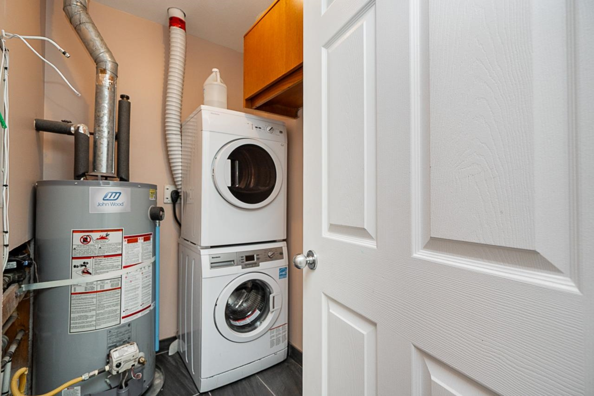 Welcome to McLellan Corners, a well-kept unit that offers bright, comfortable living in the heart of Langley. This updated 2-bed home features large windows that fill the space with natural light and a private patio ideal for morning coffee or relaxed evenings. Renovations include granite countertops in both the kitchen and bathroom, refreshed finishes, and stainless steel appliances. The living area feels inviting with a cozy gas fireplace for colder months. The king-sized primary bedroom has a walk-through closet, cheater ensuite, and direct patio access, while the spacious second bedroom is perfect for a child’s room, guests, or a home office. Walkable to shops, dining, parks, transit, and nearby schools—an easy, practical choice for those putting down roots. Includes one parking stall.