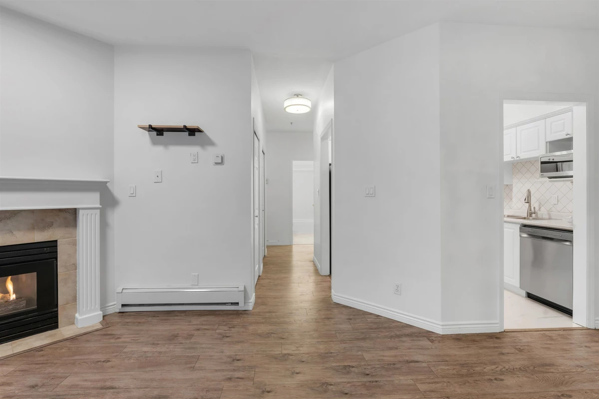 NEWLY RENOVATED CENTRAL LOCATION!!! 2 bedroom 2 bathroom Condo in sterling court with open concept layout with 9' ceiling in a completely rain-screened building with new building envelope. Gas fireplace included in strata fee & works to heat the unit. Updated bathroom, security system, window covering, microwave, pets & rentals allowed with restrictions. Exceptional amenities, including bike room, fireplace, walk-in closet, and In suite laundry. Lots of visitor parking. Pet friendly. Kennedy Trail Elementary School and North Delta Secondary School catchment area. Close to all amenities, shopping, recreation, and transit service.
