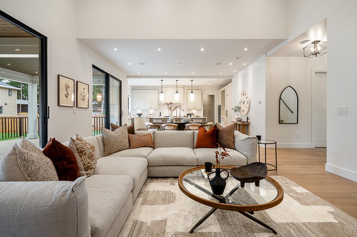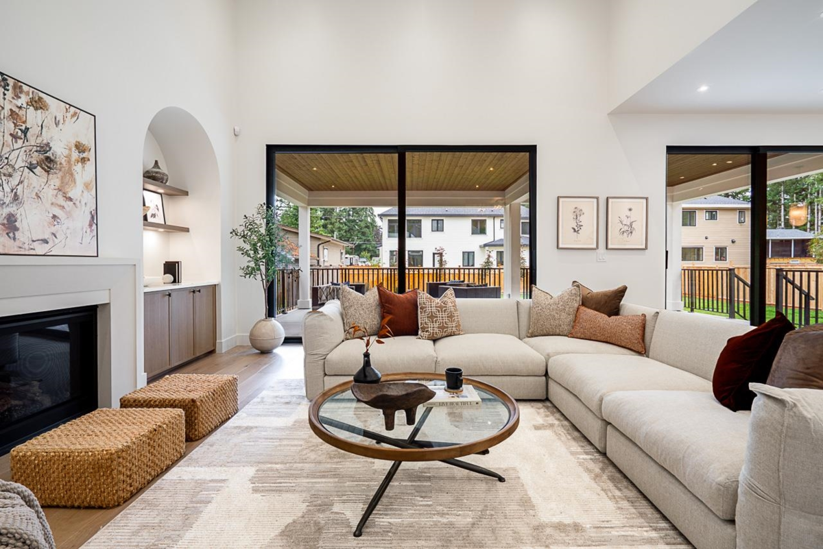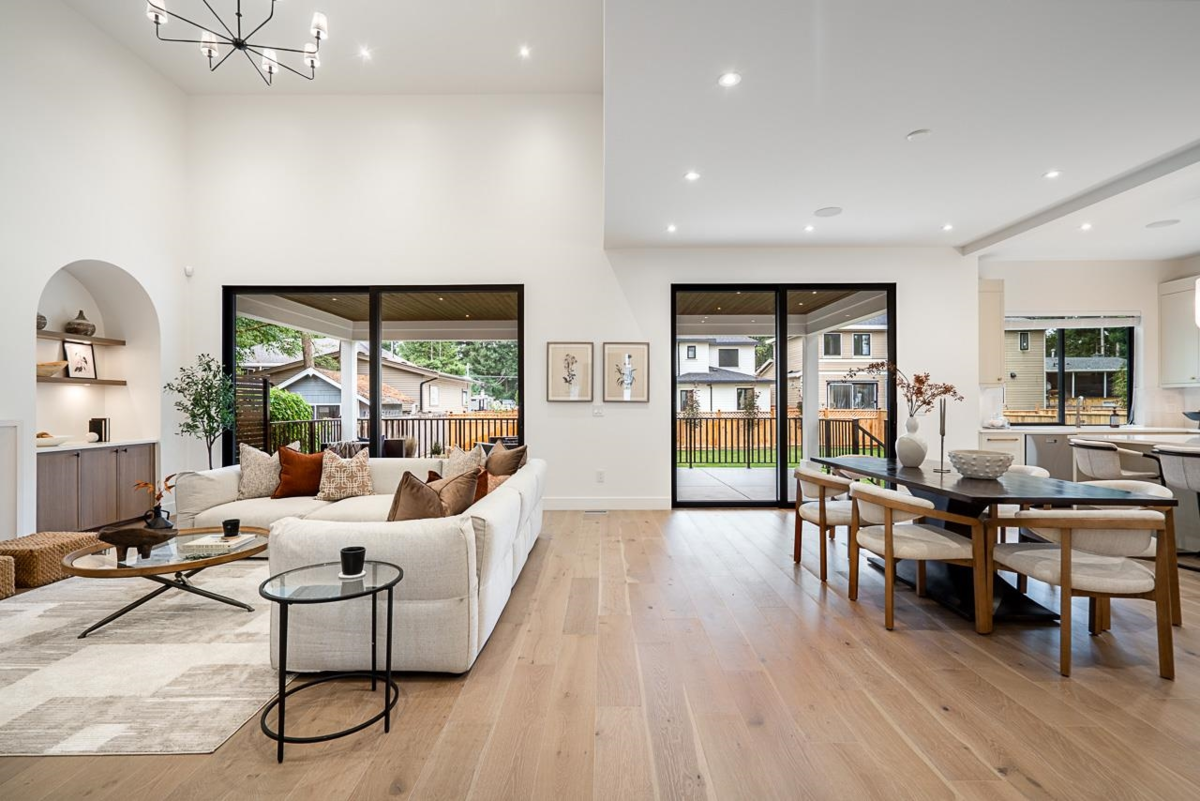 Welcome to this elegant Brookswood estate by Meseca Developments, where timeless design meets refined modern living. Situated on a quiet, tree-lined street, this 4,670sf home offers 6 bedrooms and 7 bathrooms across 3 finished levels. Oversized sliding doors open to a covered patio for seamless indoor–outdoor living. 10’ ceilings, expansive windows, and wide-plank hardwood create a bright, open atmosphere. The chef’s kitchen features Bertazzoni appliances, quartz countertops, custom cabinetry, an oversized island, and a prep kitchen with premium fixtures. Upstairs includes 4 bedrooms with ensuites, highlighted by a spa-inspired primary retreat. The lower level offers a rec room and 2-bed legal suite, with smart wiring and EV rough-in completing this exceptional Brookswood residence.