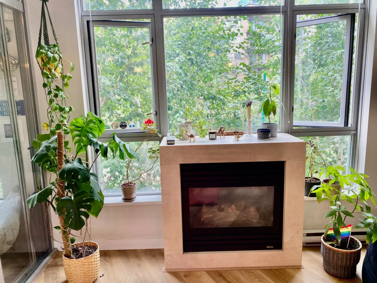Incredible location in Westend/Downtown area. Bright and spacious 1-bedroom unit (674 SF) with a solarium and storage room in the Sterling building. Features include 9 ft ceiling, S/S appliances, granite countertop and cozy gas fireplace. Just steps to the vibrance of downtown for amazing restaurants, shops and entertainment. Walking distance to English Bay for leisure activities and shops on Robson St, IGA Market/Scotiabank Theatre. This well-maintained building offers luxurious amenities: concierge, gym, hot tub, steam room, party room with kitchen/sitting area/pool table and Amazon secured parcel locker.