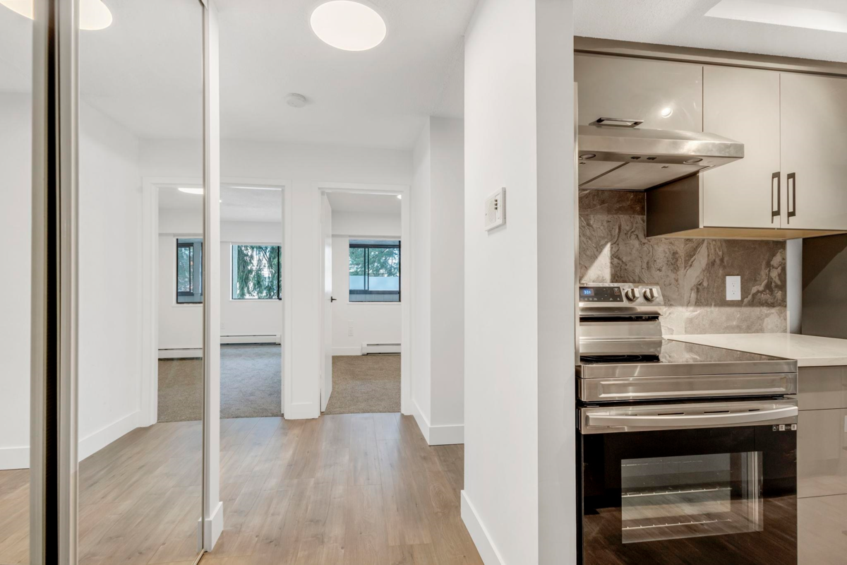 This serene White Rock 2 bed 1 bath completely updated apartment is conveniently located within walking distance to a variety of cafes, restaurants, shops, library, and the beach. The house is bright and spacious featuring two well-positioned updated bedrooms with new floor, paint and appliances and ample in-suite storage. You can unwind and enjoy your morning coffee in the large balcony. Walk to the White Rock beach every day. The building offers shared laundry, gated underground parking, a storage locker, and a common area for gatherings. Don't miss out!!