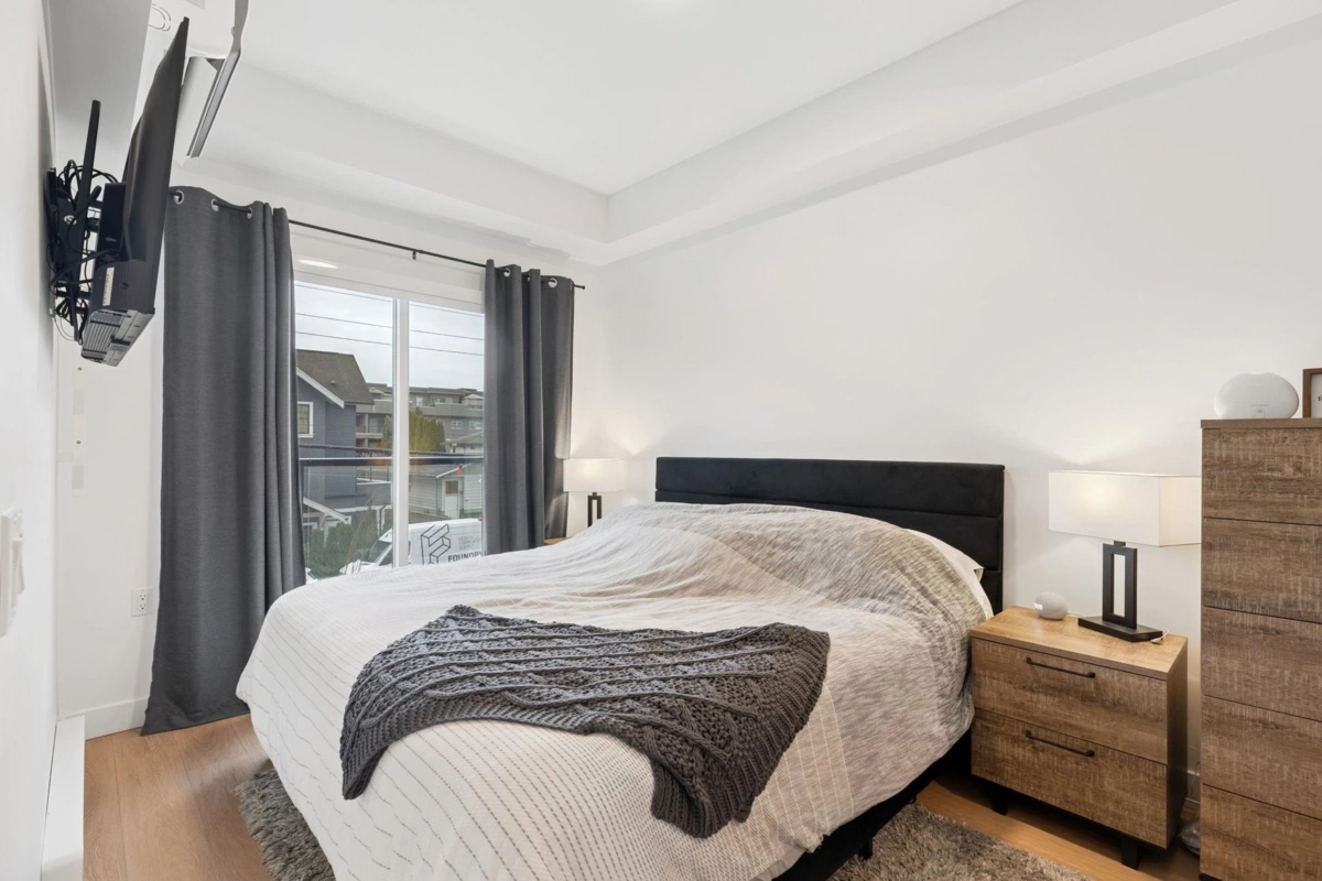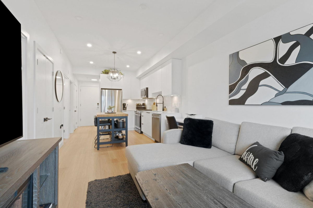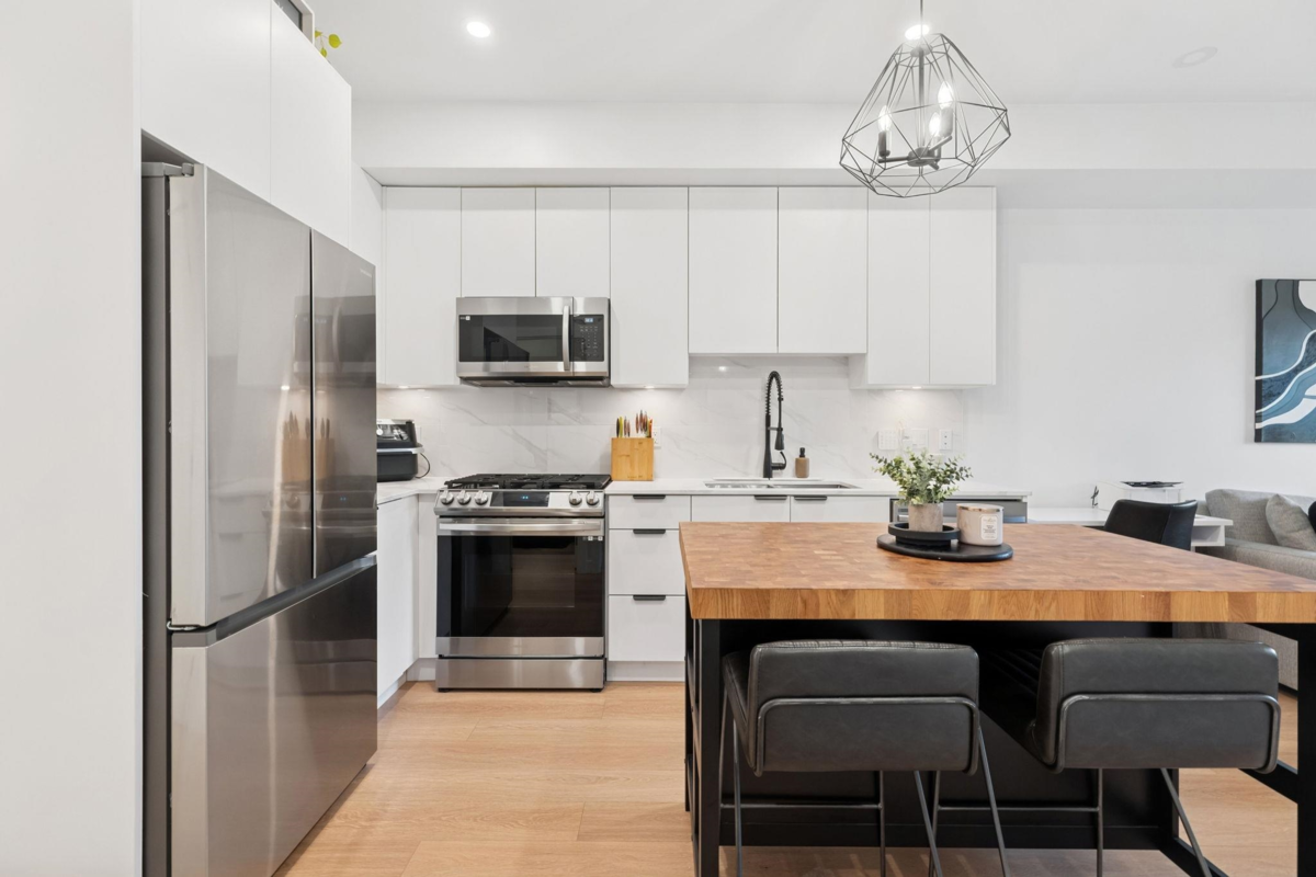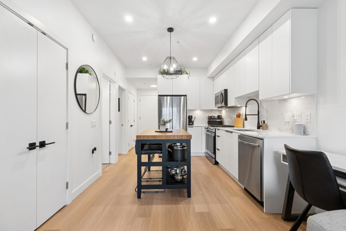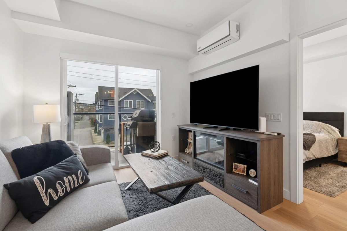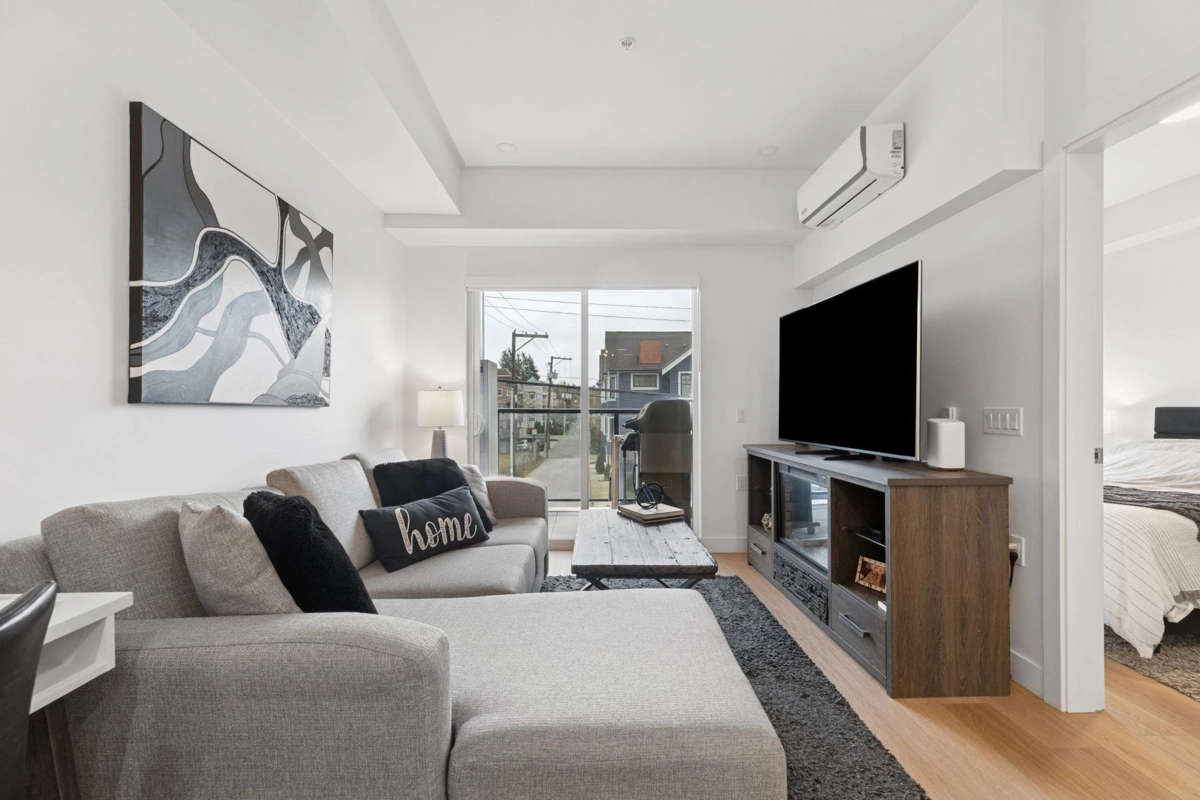Introducing Estella, a modern 6-storey building in Port Coquitlam and one of the first to offer air conditioning. This bright, 1 BEDROOM and DEN!!!! south-facing 658 sq ft home features an open layout with 9-ft ceilings, wide-plank vinyl flooring, pot lighting, and smart home technology. The kitchen offers stainless steel appliances including a gas range. Spacious bedroom with walk-in closet and ensuite. Centrally located near Gates Park, Coquitlam River, grocery stores, Port Coquitlam Rec Centre, West Coast Express, and the PoCo Bus Loop. An ideal blend of comfort and convenience.