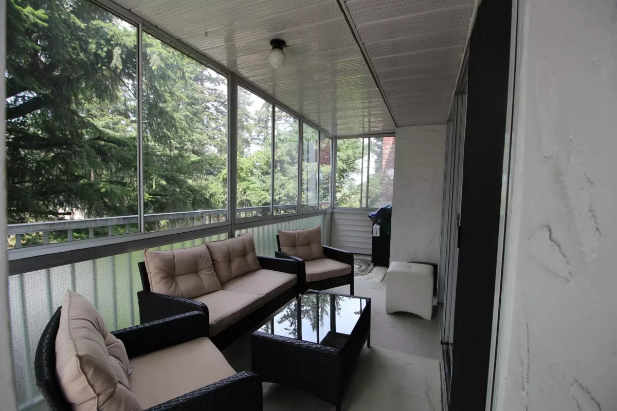 Central Location, Elmwood Manor. Corner unit. Very secure building. 2 bedrooms 1 bath unit, very bright and open floor plan with a large enclosed sundeck with storage off the sundeck and 2nd one in the underground. 55+ complex. Shopping, Library and recreation nearby. Bus stop around corner. Walking distance to most amenities. Building has an exercise and a recreation room with full kitchen and bathroom. In suite laundry. Strata fee includes heat, hot water & electricity. A well maintained building.