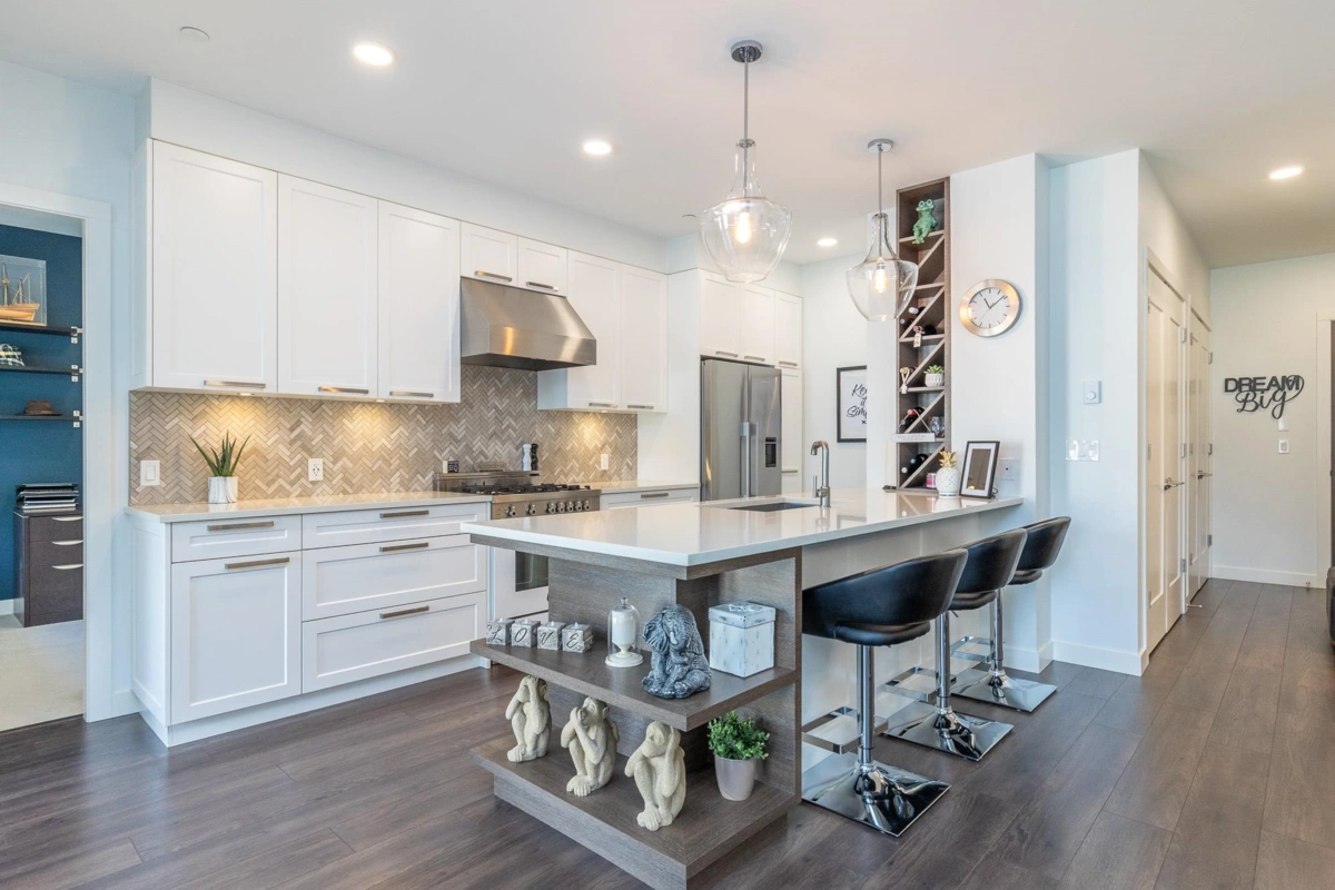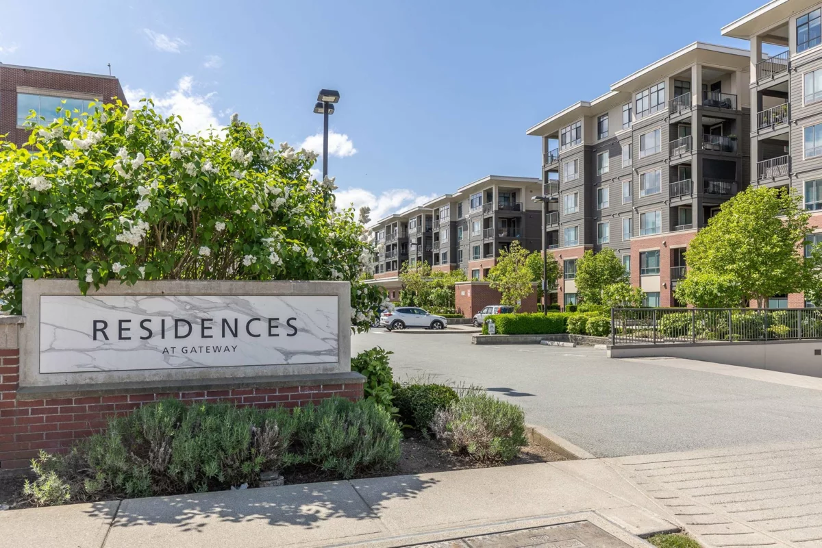 THE RESIDENCES AT GATEWAY....This immaculate hotel inspired suite has beautiful high end finishing and trim. You will not be disappointed as it is in brand new condition. Both bedrooms have their own ensuite with heated tile floors as well as a 2 pc guest bathroom. The laundry room is a dream come true with a folding table and tons of storage. The kitchen is straight out of a design magazine with a gas stove, quartz counters, mosaic backsplash and loads of cupboards and shelves. All this just steps to Restaurant 62 and short drive to Hwys, UFV and Hospital. 2 Pets with no size restriction. Easy to show.