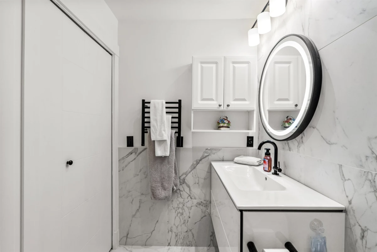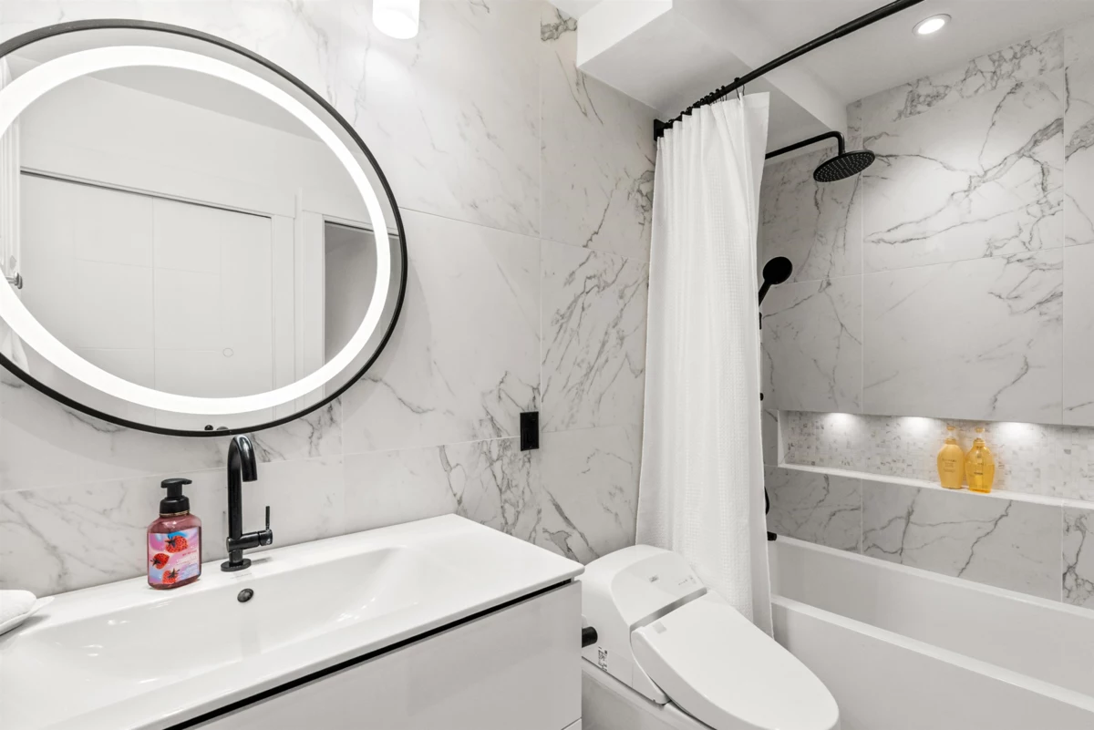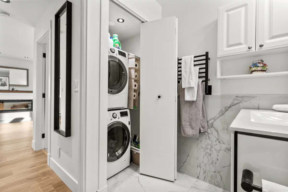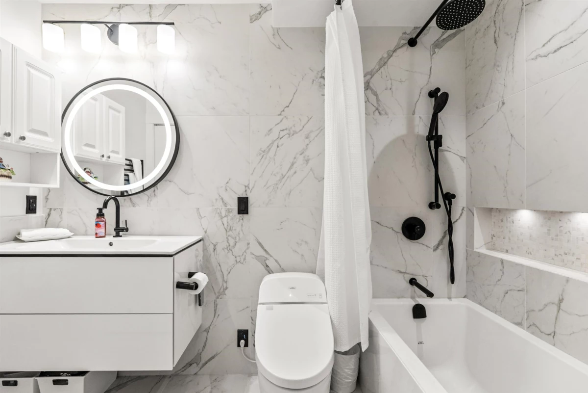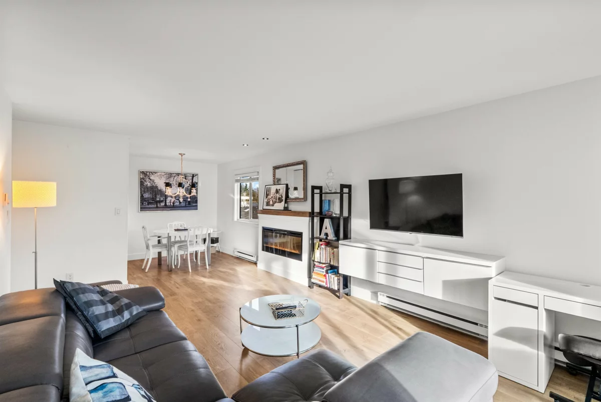 Designer finishes throughout in this fully renovated 728 sq. ft. corner condo in Tsawwassen! The redesigned kitchen features crisp white cabinetry, stainless steel appliances, and a farmhouse sink. Relax in the living room by the electric fireplace with a custom wood mantle, or enjoy the bright, south-facing enclosed balcony/solarium all year round. Luxurious spa-like bathroom, offering a soaker tub, rain shower, heated towel bar, and Toto bidet. This one of a kind home has one of the largest primary bedrooms you'll find in a condo! Finished with newer windows, engineered hardwood, and plush carpet throughout. Located just steps from shopping, dining, and transit. Pets allowed with restrictions. Make this your home today!