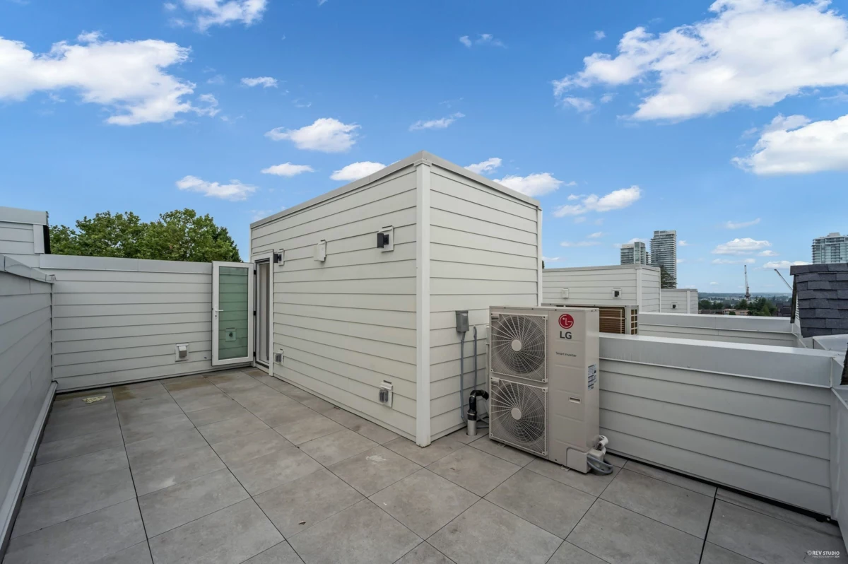 Discover this stunning SOUTH-FACING 2 bedroom, 2 FULL BATHROOM townhome featuring a 248sqft HUGE ROOFTOP TERRACE and a 100sqft PATIO. The open-concept layout is enhanced by numerous upgrades, including AIR CONDITIONING, laminate flooring throughout, custom closet organizers, and window bug screens. Just over 2 years, the building boasts an ideal location only a 5 minute drive from a 55,000sqft. YMCA and a 3 minute drive from a 24,000sqft. Safeway retail plaza. Plus, Burquitlam Station is just a 10 minute walk away, providing seamless transit access. This home comes with an EV PARKING STALL and a storage locker. For those with additional vehicles, STREET PARKING IS AVAILABLE. Don't miss out on this exceptional opportunity!