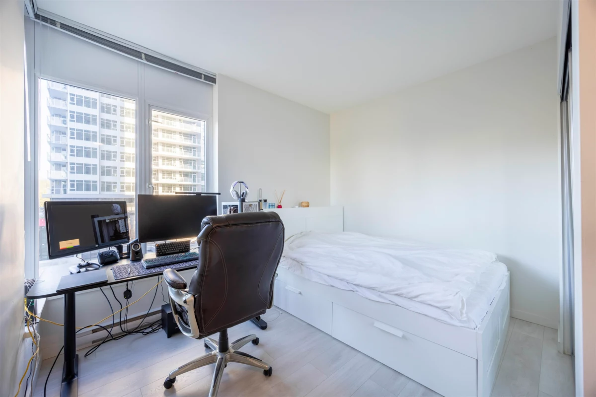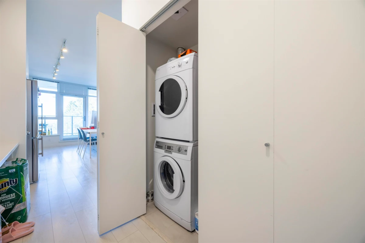 Welcome to Burquitlam Capital, where lifestyle meets comfort in this centrally located condo. Enjoy breathtaking north mountain and city views that complement the open layout with 9-ft ceilings. Stainless steel appliances, durable laminate flooring, and a spacious private balcony. 1 parking and 1 storage. Building amenities for every need - gym, lounge area, EV Charging and outdoor BBQ. Situated mere steps away from Burquitlam Skytrain Station, the YMCA, and Burquitlam Plaza, every necessity and indulgence is within reach. From grocery stores and coffee shops to restaurants and shopping, the vibrant neighborhood. Rocky Point Park is a short drive away as well prestigious schools like SFU and Burnaby Mountain Secondary. Open house: Nov.29 Sat 2:30-4pm