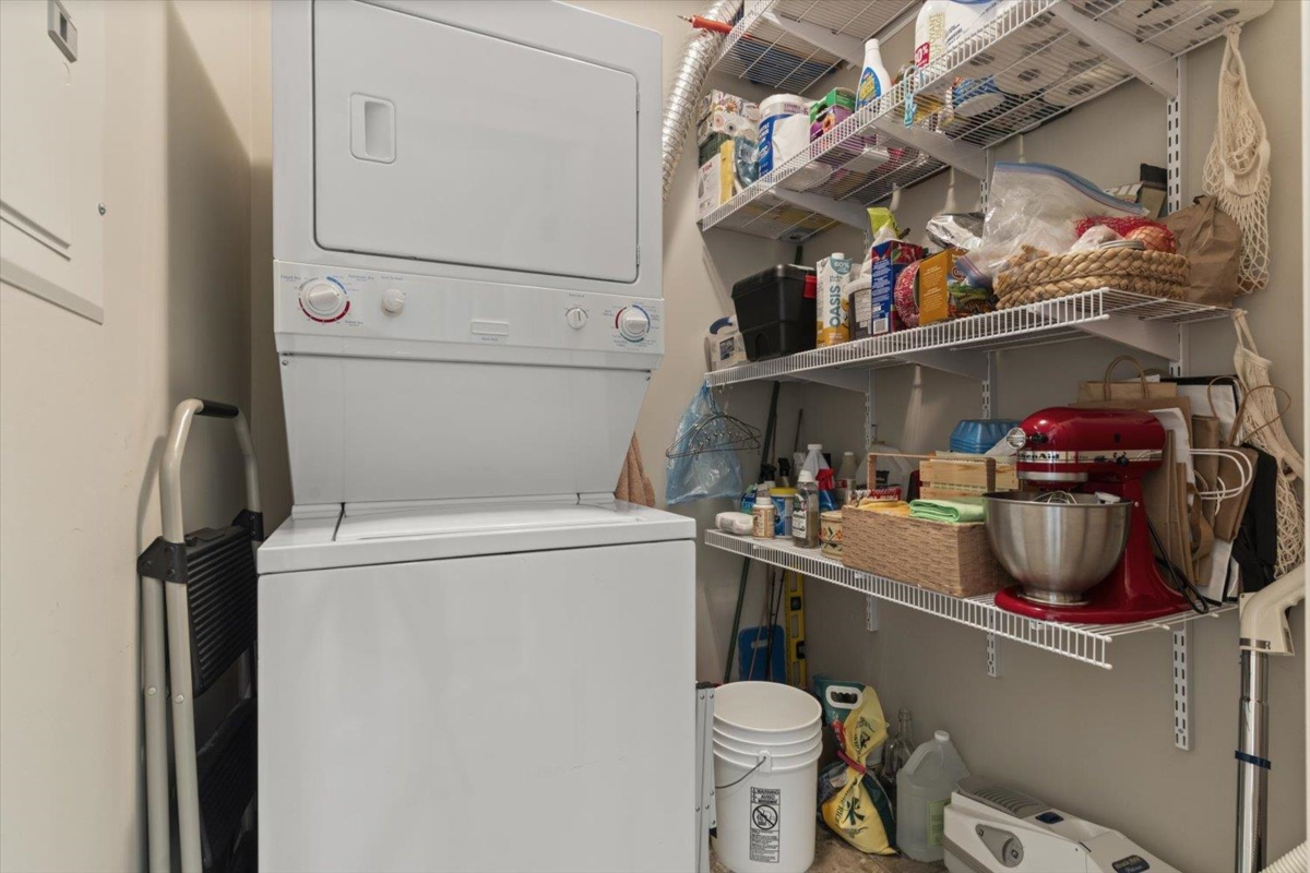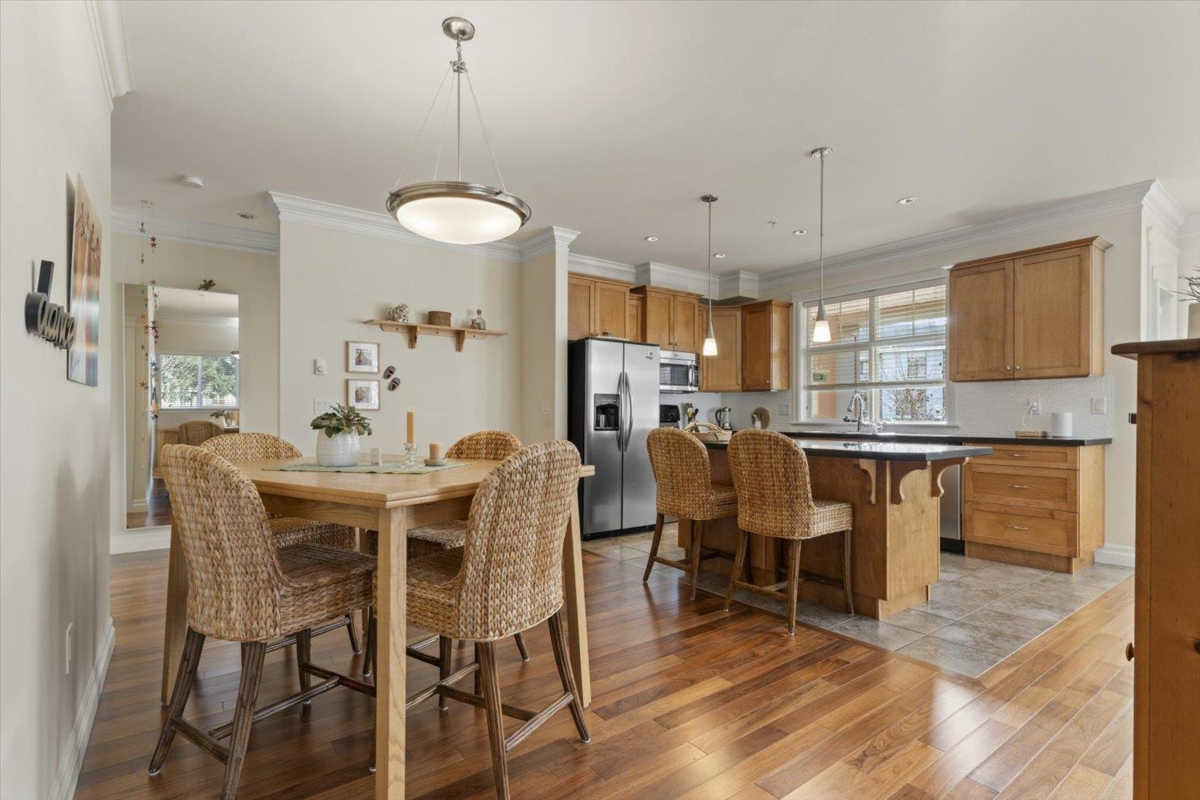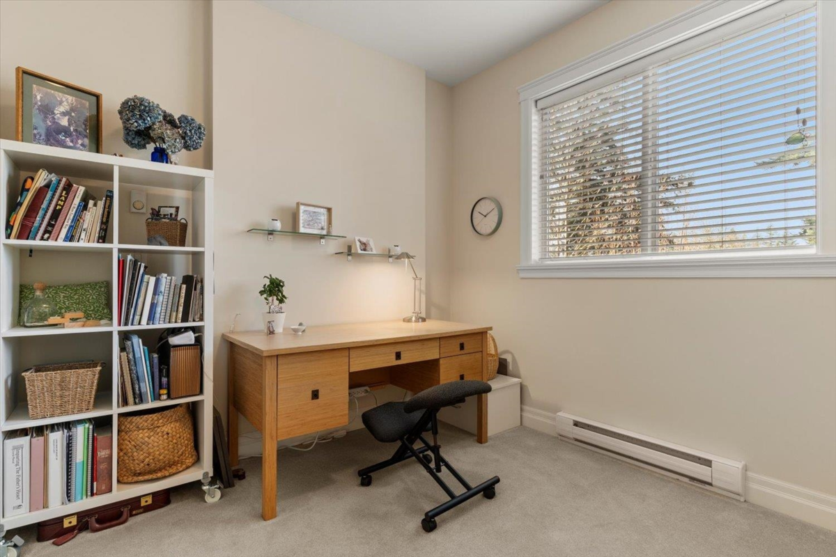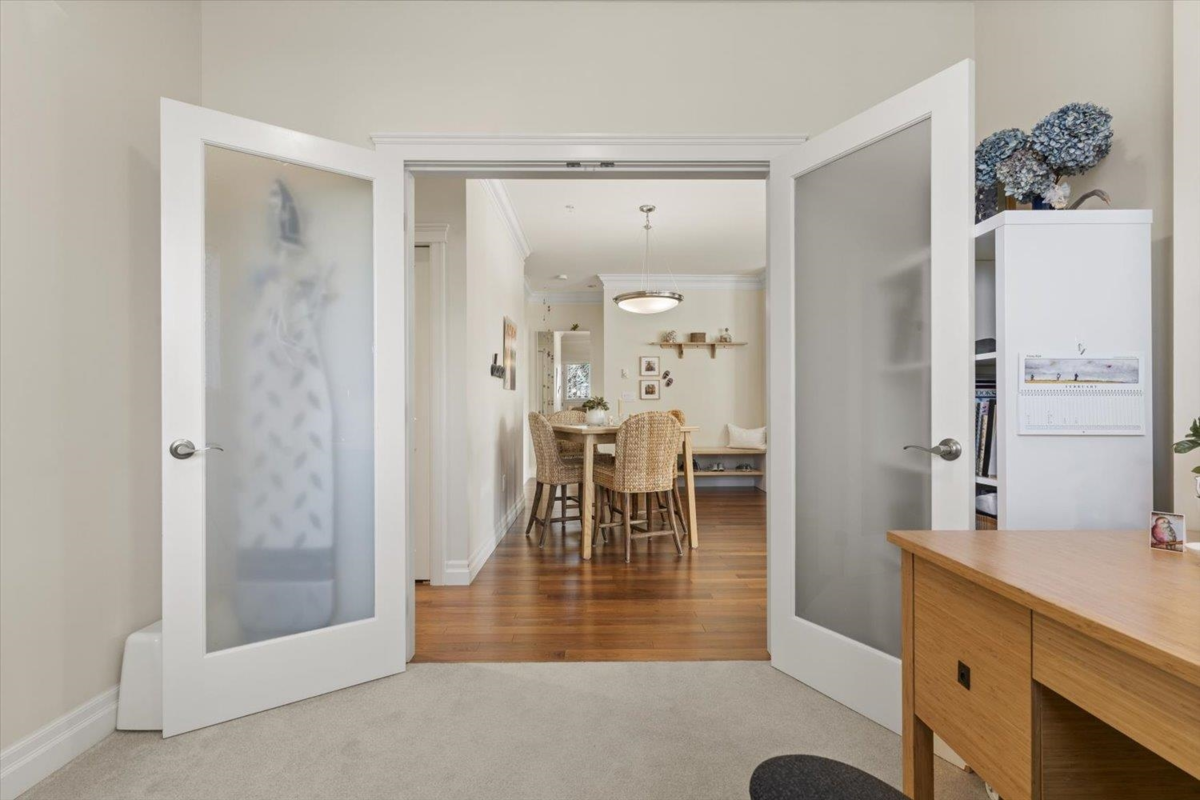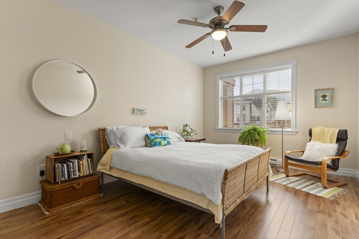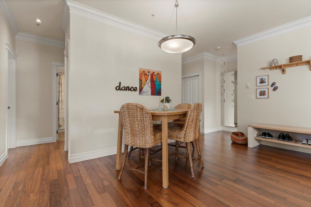 Welcome to The Hartford at Garrison Crossing! Bright and open CORNER 2 bedroom + den unit with a thoughtful layout and 9’ ceilings throughout. The SOUTHWEST-facing exposure fills the home with natural LIGHT. Beautiful Large patio ,Cozy gas fireplace, updated flooring, and a heat pump for efficient year-round comfort. Includes two parking stalls, a storage locker, plus in-suite storage room. Meticulously maintained and truly move-in ready.