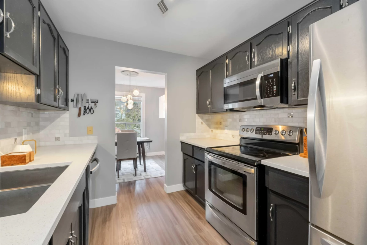 WELCOME TO YOUR IDEAL WHITE ROCK HOME & ALL THINGS WHITE ROCK! This UPPER CORNER 2B/2B HOME offers LAMINATE FLOORS THROUGHOUT! Enjoy modern living with 2-YEAR-OLD APPLIANCES and a TOP-OF-THE-LINE GAS FIREPLACE for cozy evenings. The GENEROUS LIVING ROOM (19'X12') and spacious BEDROOMS (14'2"X10'6" / 11'6"X10'2") provide comfort and style. The BRIGHT KITCHEN boasts ample CUPBOARD SPACE & QUARTZ COUNTERTOPS. Step onto your BALCONY with PLEASANT VIEWS or unwind in your UPDATED 2-SINK ENSUITE with a ROOMY GLASS SHOWER. ROOF-2018. WALK TO SHOPS, RESTAURANTS, SERVICES & THE BEACH! A MUST-SEE! 3 MINSDRIVE/ 12 MINS WALK away from THRIFT ELEMENTARY & SEMIAHMOO SECONDARY! BOOK NOW!