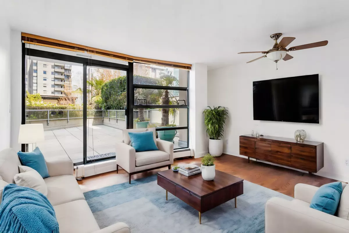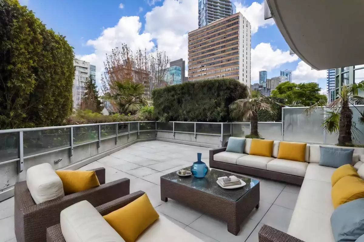 Discover urban luxury on Robson Streets West End! This exceptional listing offers a unique blend of comfort and convenience. Enjoy an updated 1 bdrm unit + den with functional floor plan, updated appliances, and a massive 551 sq ft walkout patio perfect for entertaining with friends and family. Within the building, indulge in luxury amenities such as an indoor pool, sauna, hot tub, and gym. Situated near grocery stores, restaurants, West End Community Center, Devonian Harbour Park, Marina Square, Stanley Park, the Seawall, public transportation, and much more! Included are one parking stall & one storage locker, with the addition of heat and hot water included in the maint fees. Don't miss out on this rare gem, come enjoy all that Vancouver has to offer. Book your viewing today!