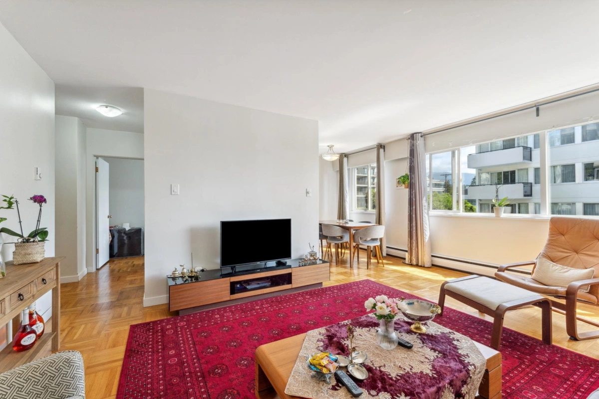 This immaculate one-bedroom home in the heart of Ambleside is move-in ready. Features include a formal entry, open living/dining with Lions Gate Bridge views, updated galley kitchen, large bedroom with walk-in closet, in-suite storage, and Fleming oak hardwood floors. Located in a well-run building with free laundry and a rooftop deck offering ocean views. Maintenance fee includes heat, hot water, laundry, and cable. Steps from the seawall, beaches, shops, cafes, Park Royal, and transit—enjoy the best of West Vancouver living.