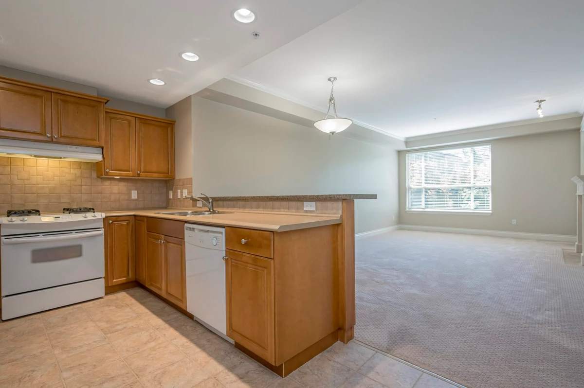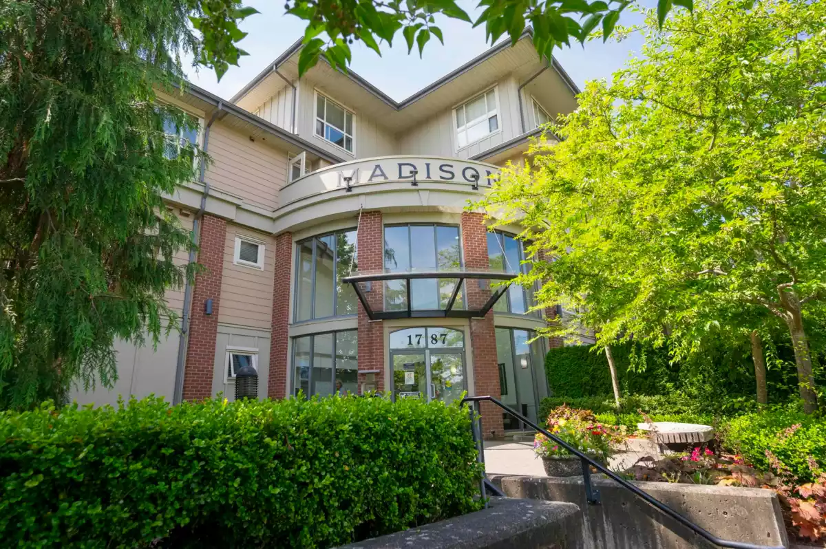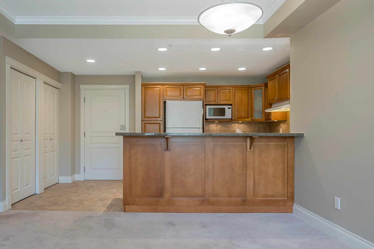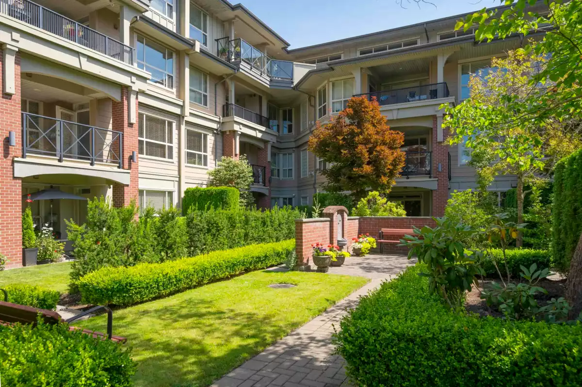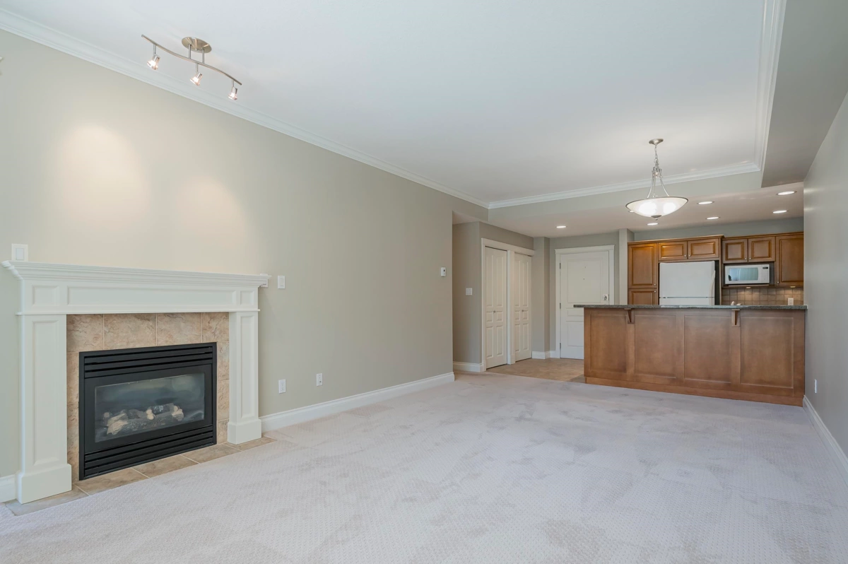 Welcome to The Madison by award-winning Genex—one of South Surrey’s most sought-after buildings. This spacious, beautifully maintained 2-bed, 2-bath home features radiant in-floor hot water heating, 9' ceilings, a cozy gas fireplace, and a large covered balcony south-facing into quiet courtyard gardens, perfect for year-round enjoyment. Enjoy a functional open-concept layout with a bright kitchen, new on-demand hot water, freshly painted, and a serene primary suite with tasteful bathroom upgrades, a separate tub and shower. Located in a quiet yet central neighbourhood just steps to Semiahmoo Mall, restaurants, parks, Peace Arch Hospital, and transit. Includes 2 parking stalls, a storage locker, a full gym, a fireside lounge, and ample visitor parking. Move-in ready