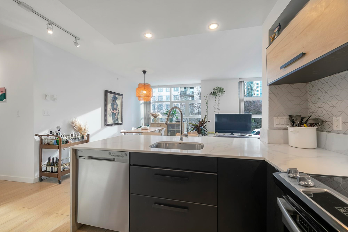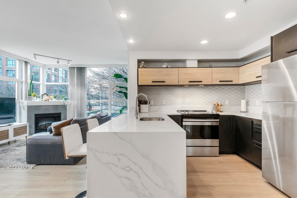 Beautifully updated 980 sq ft corner home built by Bosa, offering two full bathrooms and a smart, functional layout, thoughtfully renovated in 2020. This bright and inviting residence features in-suite laundry, a generous primary bedroom with walk-in closet and private ensuite, and a covered 9’ x 8’ balcony—ideal for year-round enjoyment. Perfectly positioned just steps from Olympic Village, the Seawall, parks, and some of Vancouver’s best dining, with effortless access to Downtown, Pacific Central Station, and SkyTrain for seamless commuting. The well-maintained, pet-friendly building offers excellent amenities including a gym, bike storage, and party room. A fantastic opportunity to enjoy vibrant urban living in one of Vancouver’s most connected and sought-after neighbourhoods.