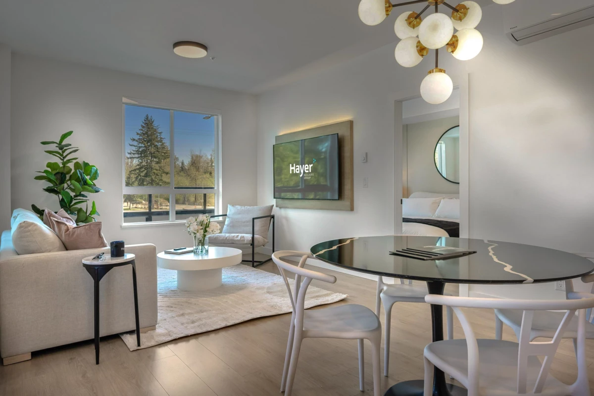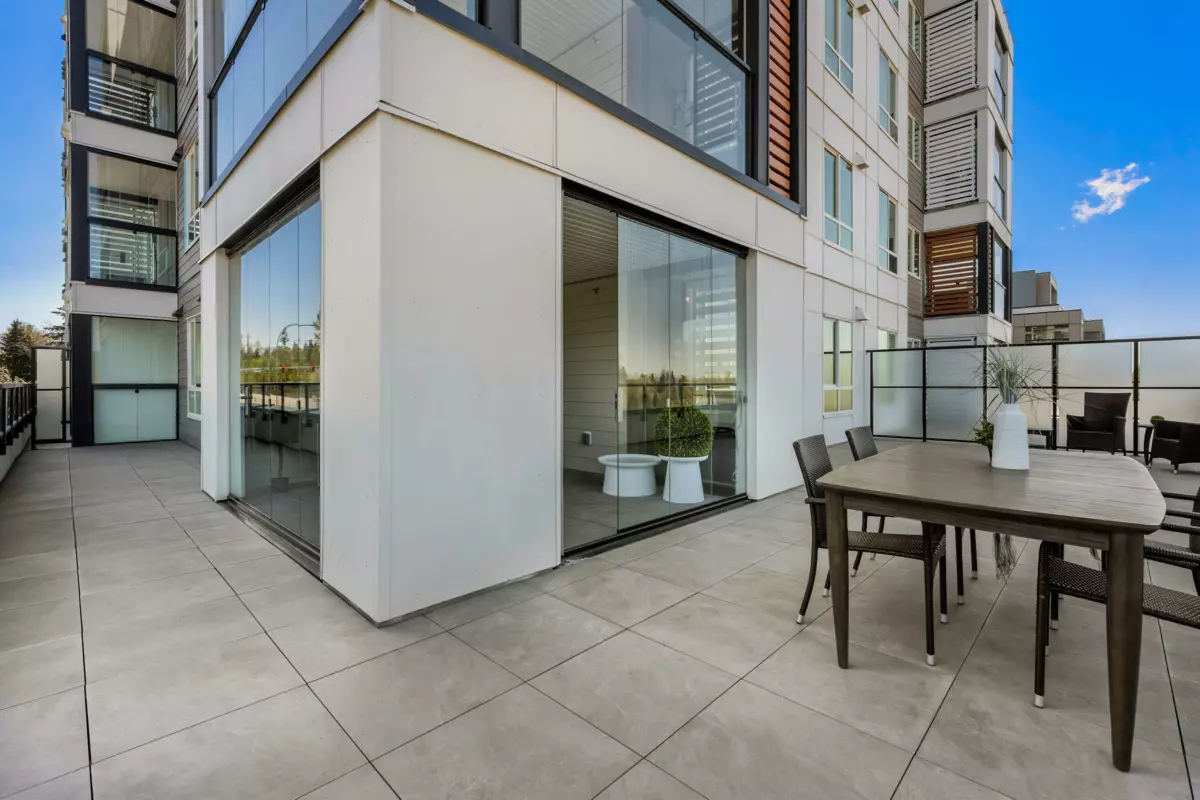 You won’t find a better condo! This impressive home at Hayer Town Centre has it all: AC, laminate throughout, integrated dishwasher panel, and designer upgrades. PLUS enjoy an 800 sqft private patio IN ADDITION to your 168 sqft LUMON SOLARIUM featuring FULL HEIGHT retractable glass truly creating a versatile space for year-round living. Even better- all staging furniture is included, making this an exceptional turnkey opportunity. Residents are just steps from 35,000 sqft of shops & services, an amenity building with a games & party room, courtyard games area, private dog park, rooftop patios & full-time on-site concierge. Walking distance to RE Mountain Secondary and Peter Ewart Middle School. BONUS: 968 sqft of outdoor space with NO strata fees! Don’t miss this incredible offering!