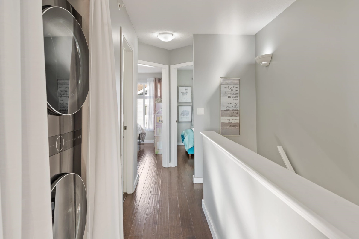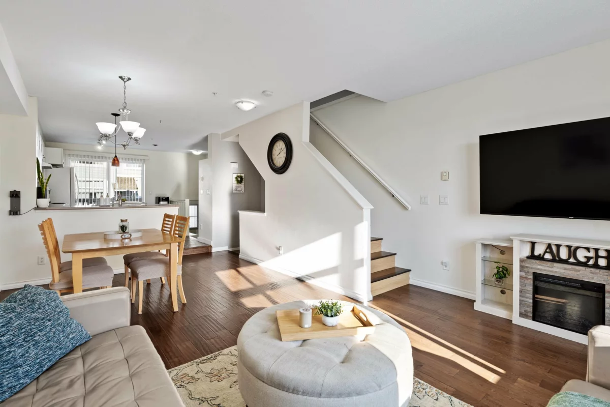 Welcome home to Denim, a sought-after townhouse community in the heart of Willoughby! This pristine 3 bedroom, 2 bath home is designed for everyday comfort, with an open main floor where large windows fill your space with natural light. Upstairs, your primary bedroom feels like a retreat with its vaulted ceiling and private ensuite, plus the ease of laundry right where you need it—on the bedroom level. Downstairs, your rec room opens to a backyard patio and grassy area, perfect for relaxing or entertaining. Pet-friendly complex with playground, basketball court, and clubhouse, all just minutes from amenities and easy highway access. This is a turnkey home in a fantastic location!