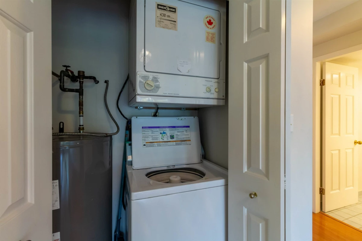 Centrally Located unit is in very quiet, Safe and convenient Neighbourhood. This North facing unit includes 2 Bedrooms and One Bathroom Bathroom counter is Quartz. Newly painted walls and Kitchen Cabinets. Enclosed Balcony can be used as an office. In suite Laundry ( washer and Dryer) Laminate flooring. One underground Parking with are for Bike locks. Elevator for your convenience. Lots of street Parking Easy excess to All Major Routes. 10 min to Downtown and 3 min to Hwy 1.Very close to Pandora Park, Donald's Market, Close to Banks, Shopping, Transit, Schools. and very easy to show with some notice.