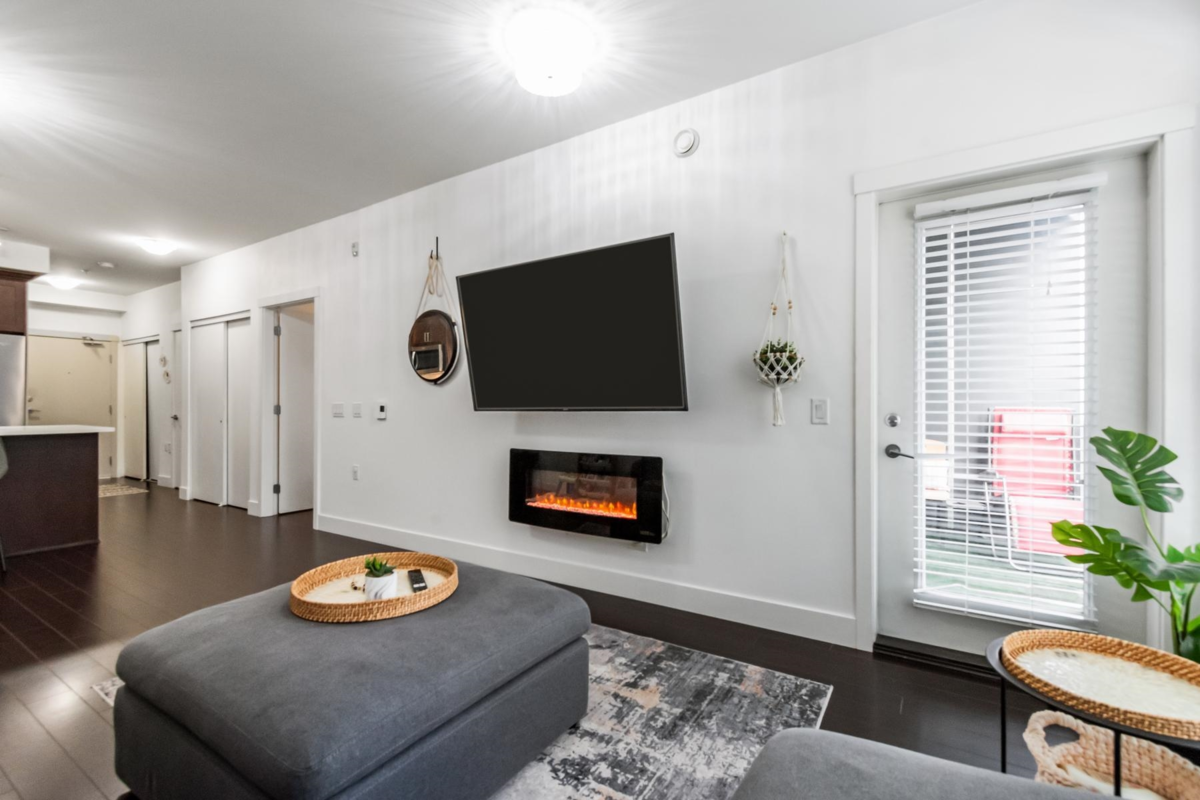 Welcome to LUMIERE, a NEW DEVELOPMENT in the heart of Downtown Port Coquitlam !! Well laid out open concept 1 bedroom & Den. Kitchen has quartz countertops, breakfast bar, stainless steel appliances & white shaker cabinetry w/under mounted lighting. Beautiful 12mm laminate flooring throughout with TJI silent floor system. 9' ceilings throughout for an open & airy feeling. Roughed In Central Vacuum, Smart Thermostat. Rec Centre. 2 Recreation Rooms for entertaining !! Wheelchair friendly. 1 parking stall included w/several bike rooms. Close to transit, schools, Gates park, Westcoast Express.