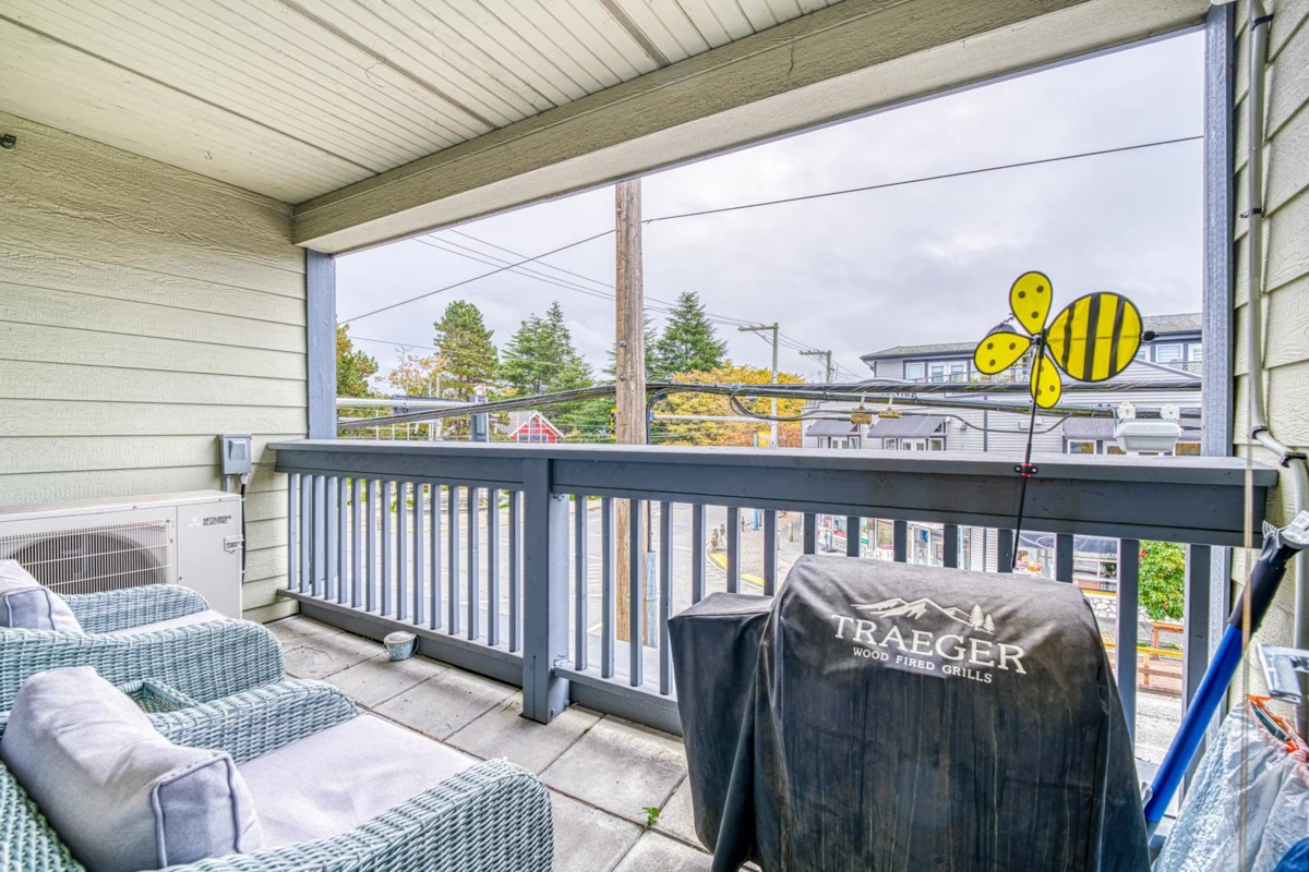 STEVESTON VILLAGE PROPER! Rarely available, air-conditioned bright corner-unit 2 bd and den w/ 2 parking spots is located in the boutique "Mukai". The den is big enough to be a 3rd bedroom. This one has it all: renovated floors, air-conditioning, upgraded stainless steel appliances. Enjoy open concept living and dining leading to a balcony with a great view of the famous Steveston Tram & Park. Everything is at your doorstep: fresh coffee & pastries downstairs, transit, restaurants, pharmacies, medical offices, Fisherman’s Wharf, the boardwalk, groceries, Community Centre with library...Stroll to to nearby Garry Point Park and catch the sunset! Lord Byng Elementary, McMath Secondary are nearby too. Call now to book your viewings!