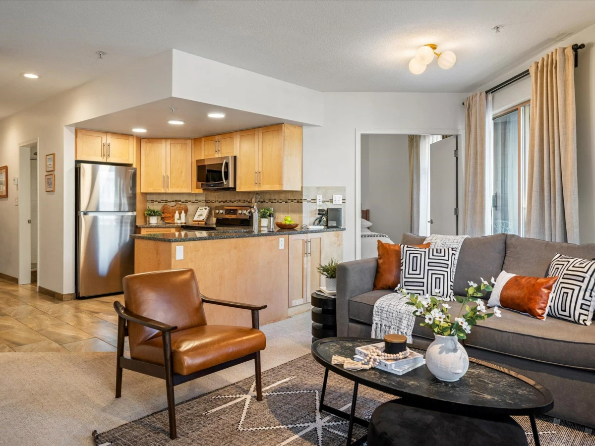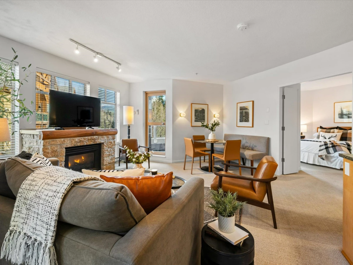Welcome to Tyndall Stone Lodge, ideally located in the heart of Whistler Village with picturesque views of Olympic Plaza and Blackcomb Mountain. This updated 2-bed, 2-bath residence features a modern open-concept layout, a sleek contemporary kitchen, and a welcoming living area with a gas fireplace. Two private patios to enjoy the mountain air year-round. Residents enjoy secure underground parking, a bike/ski room, and access to the outdoor pool and hot tub. With convenient elevator access and unbeatable walkability, everything you need is just steps away. Phase 1 zoning offers maximum flexibility—nightly rentals, Airbnb management, long-term leasing, or full-time living. A versatile and inviting Whistler retreat—your opportunity to own in one of the Village’s most coveted locations.