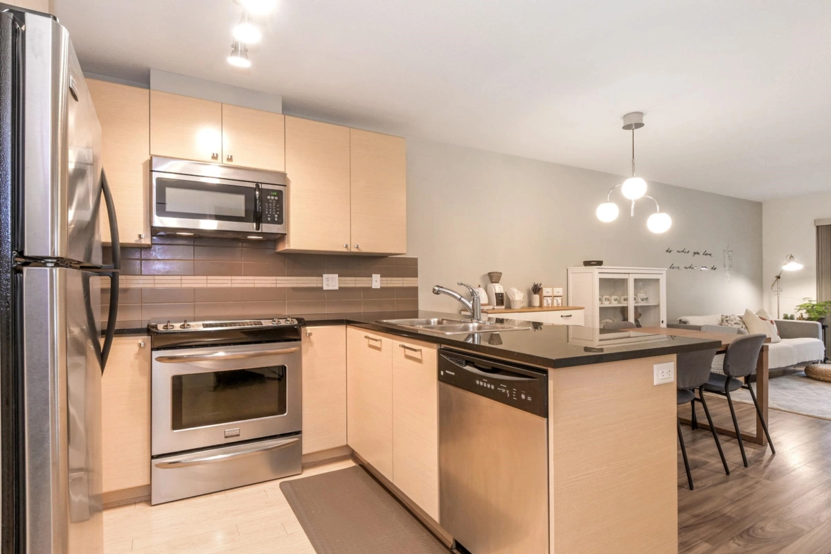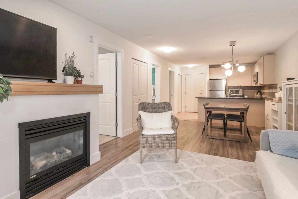 Welcome to Sunset Grove, a highly sought-after community offering comfort, convenience, and a peaceful setting. This bright & spacious 750 sqft, 1 bedroom plus den home is situated on the quiet side of the building, overlooking the garden & greenbelt for a serene outlook. Inside, you’ll find a cozy gas fireplace, quartz countertops, stainless steel appliances, and the convenience of in-suite laundry. The home includes 1 underground secured parking stall & a storage locker, with plenty of street parking available. Enjoy unbeatable walkability with transit just one block away, Willowbrook Mall three blocks away, a short walk to Katzie Elementary, and quick access to the freeway. Rentals are allowed, making this a great option for both homeowners and investors. A must see to truly appreciate!