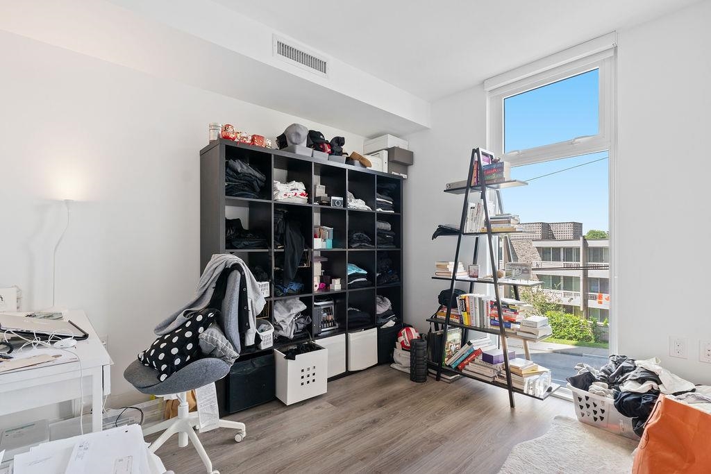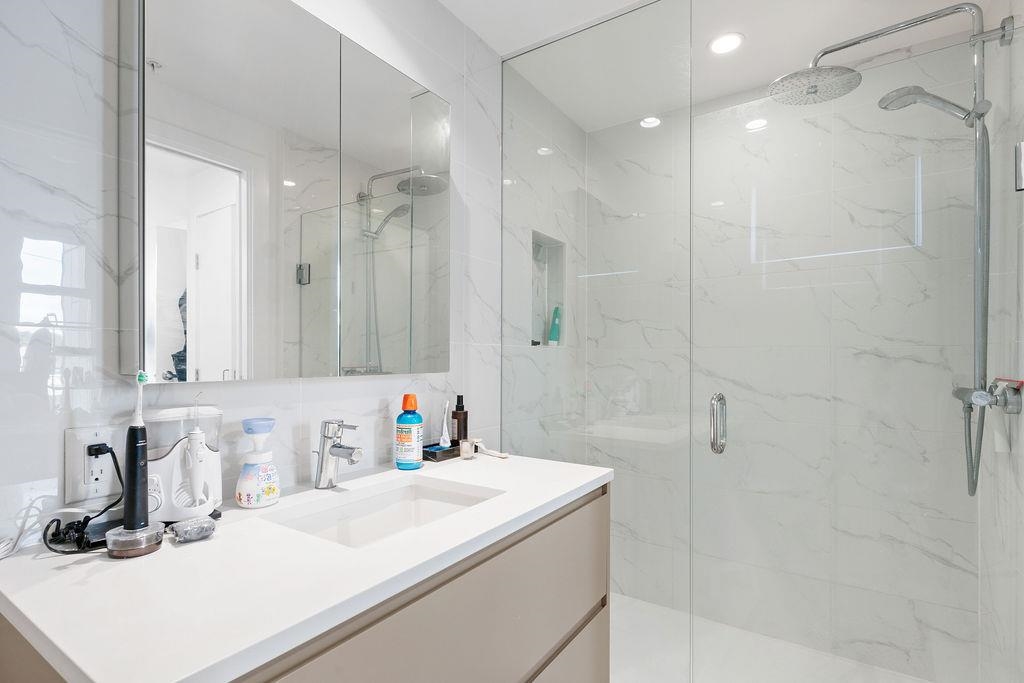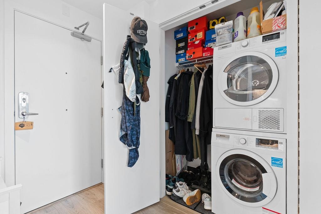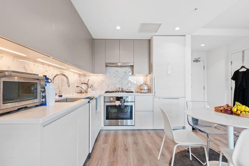 This bright and spacious 2-bedroom, 2-bathroom corner unit offers a thoughtfully designed layout with separated bedrooms for added privacy. Priced $130K less than previous purchase price! Enjoy premium finishes throughout, including Bosch appliances with a gas cooktop, and air conditioning. Step out onto the generous balcony. The primary bedroom features a walk-in closet and a private ensuite bathroom. You'll also enjoy peace of mind with the remaining 10-year home warranty and access to an impressive array of amenities: a rooftop terrace with garden and BBQ area, a fully equipped fitness centre, concierge service, a multi-purpose room with kitchen, business rooms, and a 4,700 sq. ft. daycare with a large outdoor play area. Parking and storage included!