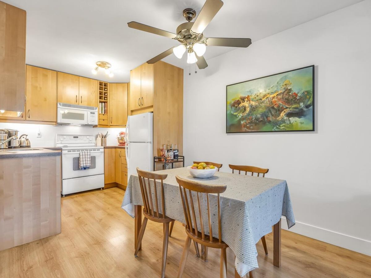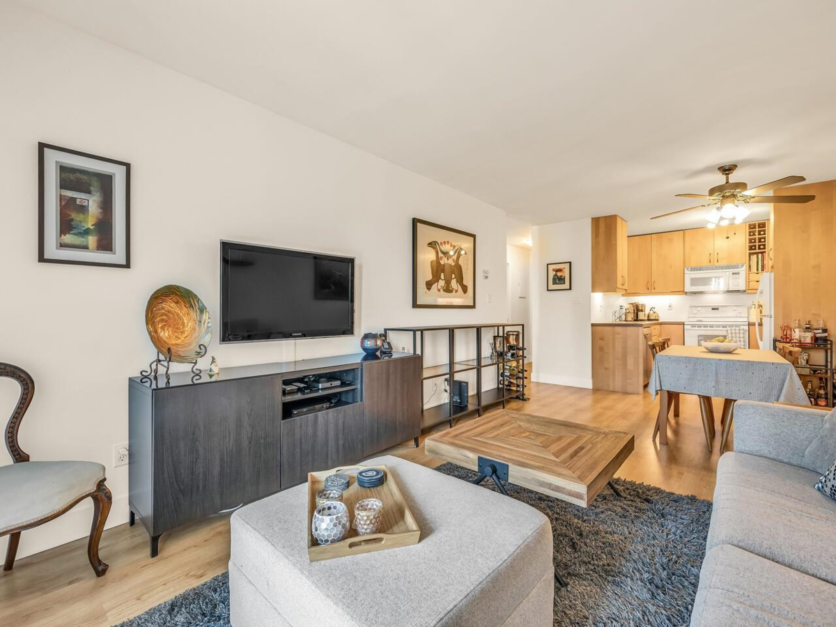 Welcome to Britannia Place this bright, south-facing, dog friendly, 1-bed + den home is ready for you. You'll love the open-concept kitchen and living area, ideal for entertaining. The spacious bedroom that fits a king-sized bed and dresser, and a den that's a great work from home space or storage. Step outside to your private sunny patio — the perfect retreat for summer lounging. This building has been looked after w/ major updates: Re-piped(2013) New roof(2019) New boiler(2021) 2 new washers(2021) New elevator(2022). Extras include secure underground parking and a bike room. There's also ample street parking that's situated in a quiet, walkable neighbourhood. Walk down to restaurants, brewery row, the rec centre, groceries, the Quay & Seabus- Lower Lonsdale has it all!