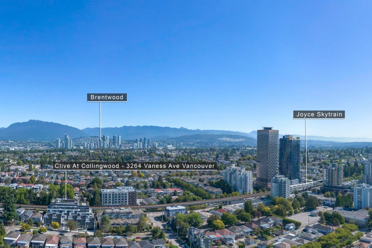 MOVE-IN READY | CLIVE at Collingwood offers the best value in East Vancouver’s Joyce-Collingwood neighbourhood. This south-facing 1-bedroom home is located on the quiet side of the building, offering peaceful living just steps to SkyTrain. One of the final opportunities to own at Clive, this concrete home can be secured with only a 5% deposit, with pricing that may qualify for PTT & GST exemptions. Superior finishes include air conditioning, gas range, smart home technology you can control from your phone, and the world’s most powerful air-filtration system for year-round comfort. Functional layouts maximize space, with storage lockers available for added convenience. Don’t wait—secure your home at Clive today.