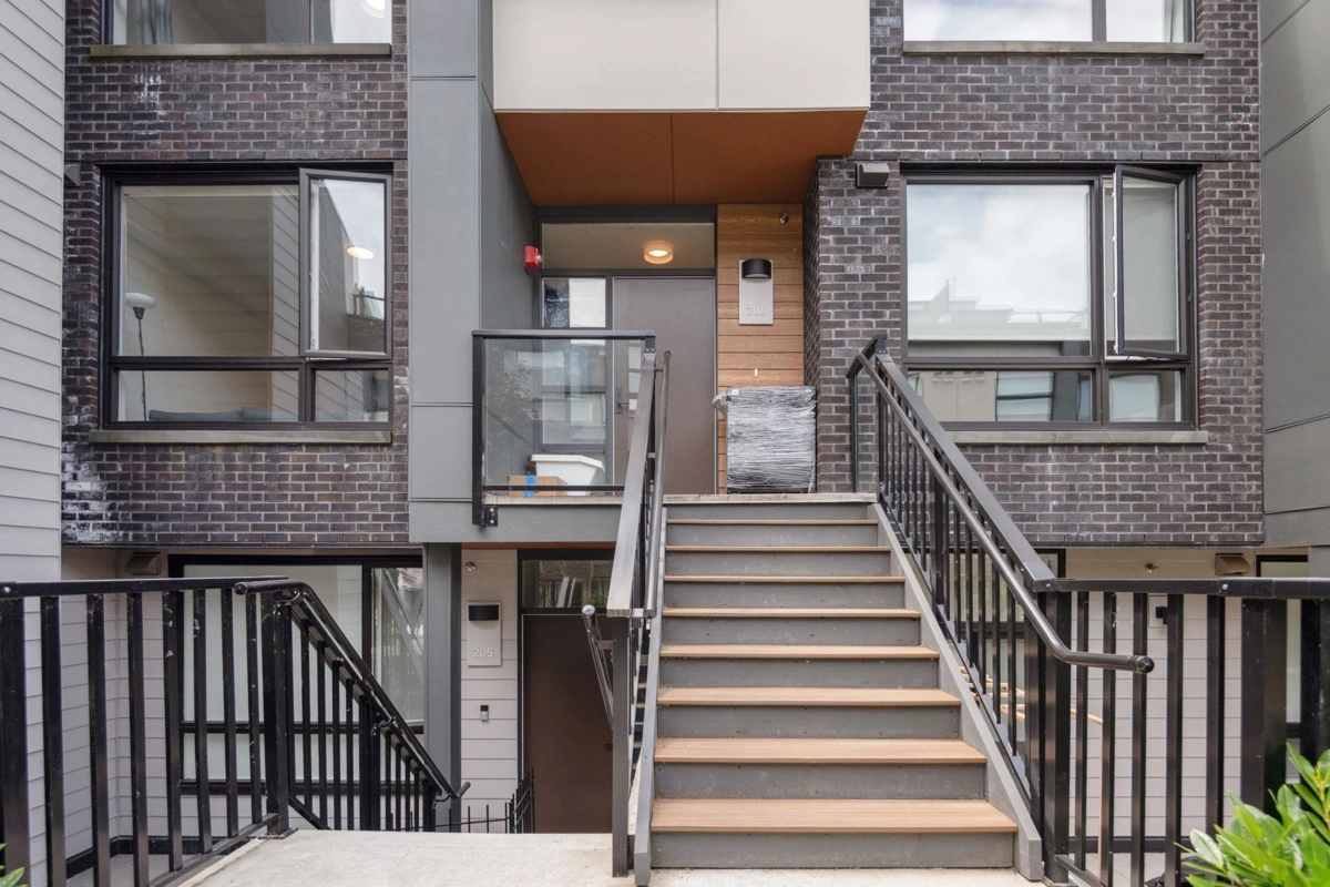 KIN Collection by Beedie – a stylish 2-bedroom + nook + 3 bath+ 400sf rooftop patio townhome in Metrotown’s Royal Oak area. This elegant home boasts a modern open-concept kitchen with Fisher & Paykel appliances, a gas stove, and natural wood accents. The functional layout two bedrooms on upper level, including a spacious primary suite and a beautifully finished ensuite, a nook space ideal for a home office or more pantry, and comes with one EV ready parking + storage. Enjoy an oversized laundry room with plenty of storage. Rooftop deck with panoramic view. Amenities: outdoor bbq area, gym, yoga studio and a party room with bar and outdoor table tennis and patio for entertainment. Steps to Royal Oak Station, shops and restaurants on Kingsway + Metrotown. OH Jan 4 (Sun) 2-3:30PM