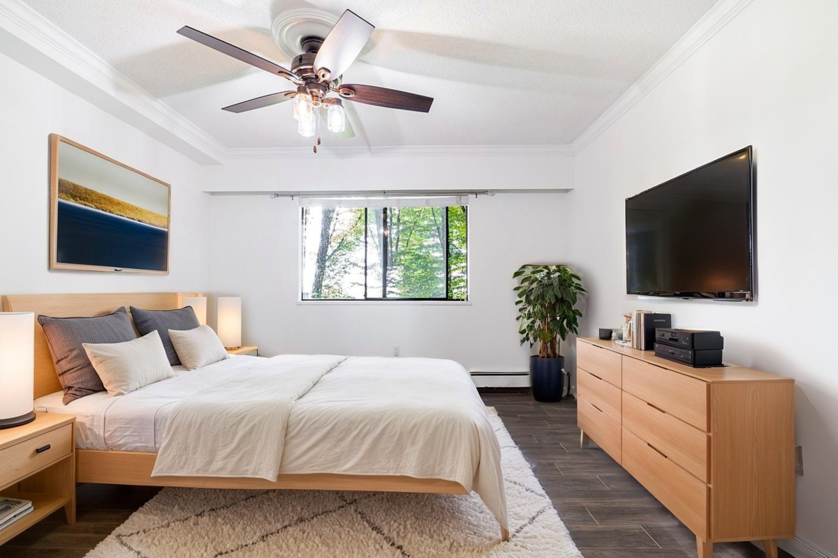 TASTEFULLY UPDATED & MOVE-IN READY! This beautifully renovated 2-bed CORNER suite offers over 1,000 sq.ft. of comfortable living space providing an abundance of natural light. Featuring updated flooring, paint, bathrooms, and a newer kitchen with modern appliances & maple cabinetry, this home blends style & practicality throughout. The spacious living room includes an electric fireplace, while the primary bedroom features a walk-through closet with built-ins leading to a convenient 2-piece ensuite and 4-piece bathroom. Significant building upgrades: re-piped (2017), new roof (2020), building envelope (2025). Strata fee includes heating & hot water. Centrally located just minutes from schools, Skytrain, shopping, parks, restaurants and The Quay. This one truly feels like Home Suite Home!
