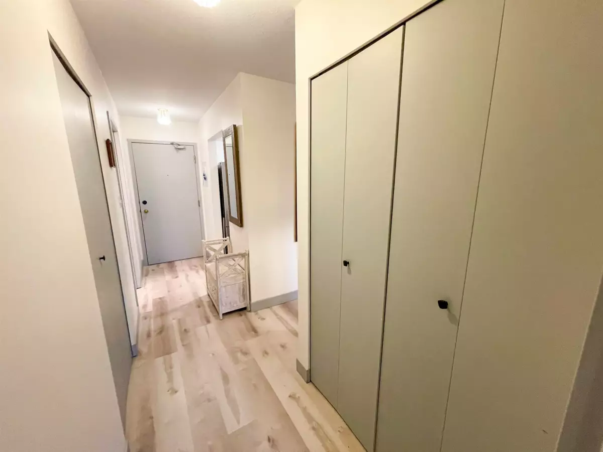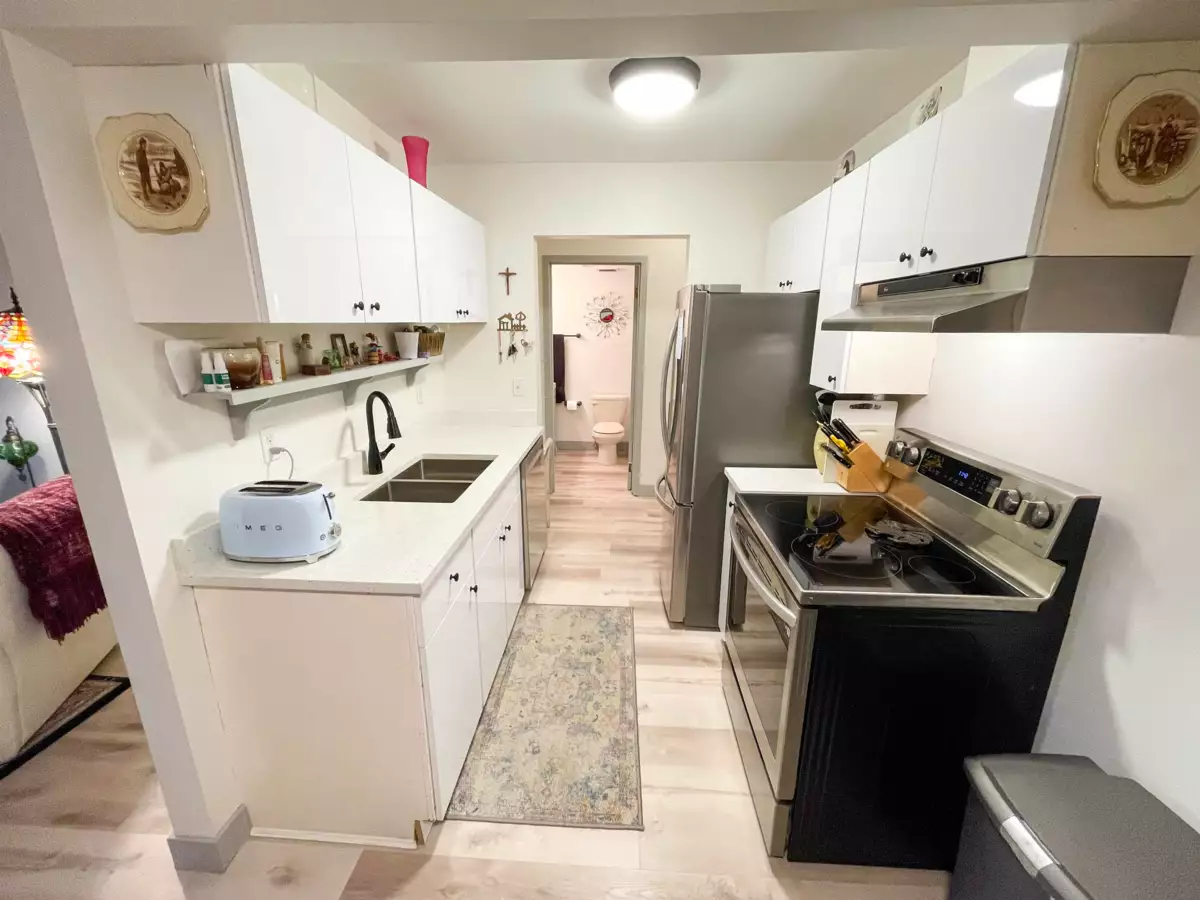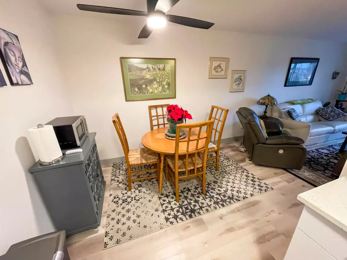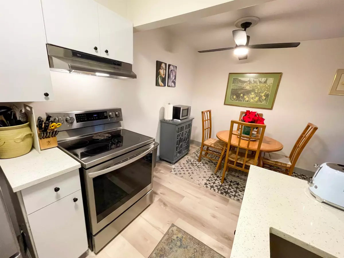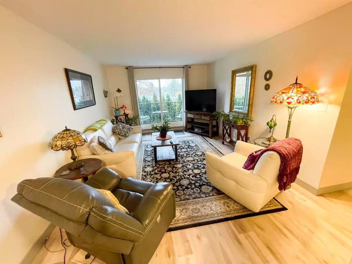 Step into this beautifully updated home where all the work has already been done for you. Featuring a completely refreshed interior with modern finishes throughout, this inviting space is move in ready and ideal for both first time buyers and downsizers. The bright living area is enhanced by a brand new window that lets in loads of natural light, while the adjoining dining space flows seamlessly out to a newer vinyl deck that is perfect for morning coffee or evening relaxing. Updated flooring, fresh paint, and contemporary fixtures create a clean, cohesive look, and the kitchen and baths have been tastefully modernized for everyday comfort and style. Set in a well located building close to shopping, transit, schools, and everyday amenities.