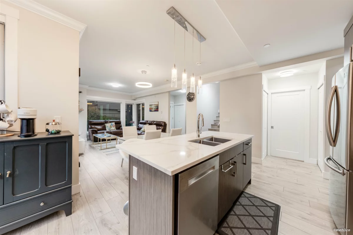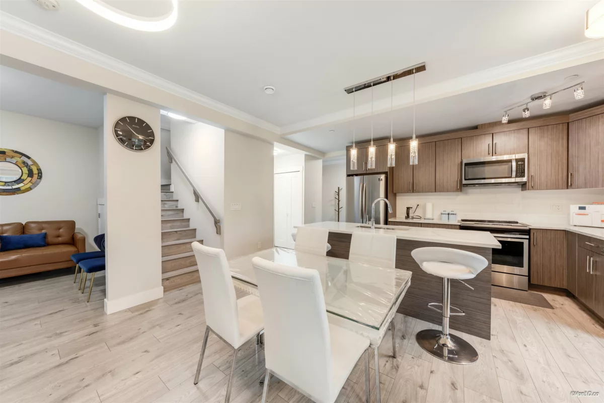 Rare corner townhouse in Surrey City Centre with nearly 1,500 sq.ft. of bright NE-facing living space—steps from TWO SkyTrain stations! This unique home is the only unit with its own private garden and offers direct wheelchair-accessible entry, ideal for families and multi-generational living. Enjoy 2 bedrooms, 2 full dens, 2.5 baths, full-height windows, and a spacious two-level layout rarely found near rapid transit. 2023 upgrades include LG washer tower (5.2/7.4 cu.ft), Bosch 44 dBA dishwasher, and custom closet organizers. Amenities: gym, clubhouse, parking, storage, 24/7 security. Close to SFU, future UBC campus, and Our Lady of Good Counsel. A rare blend of space, convenience, and privacy—book your showing today!