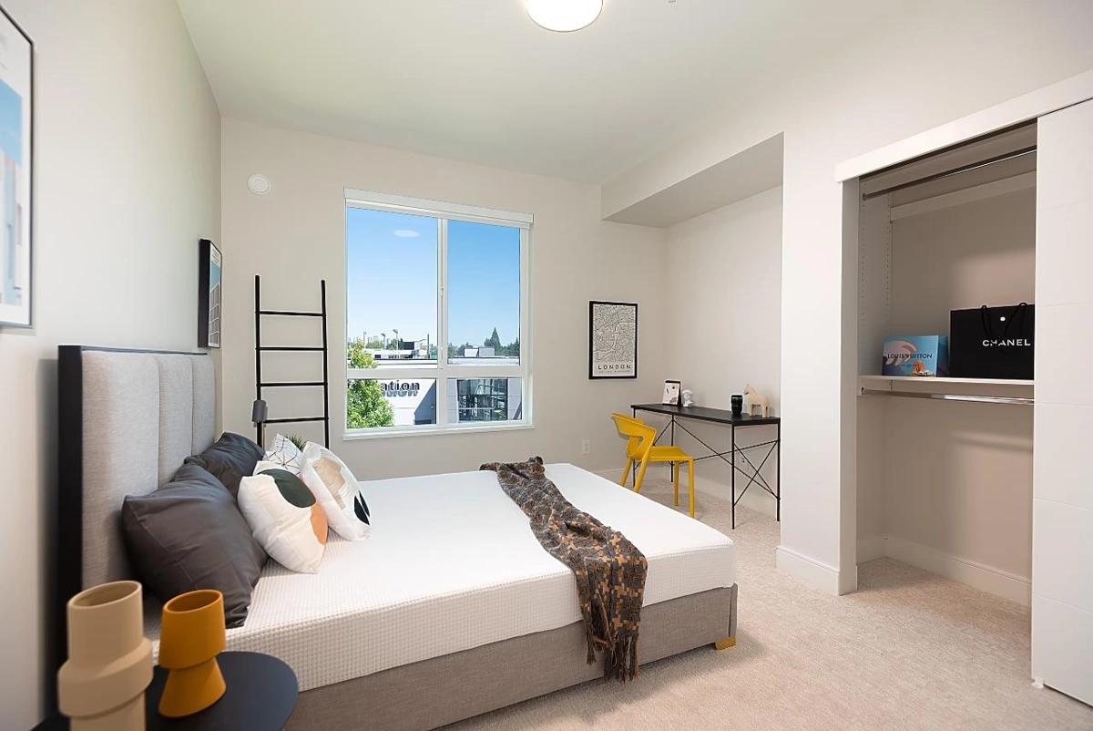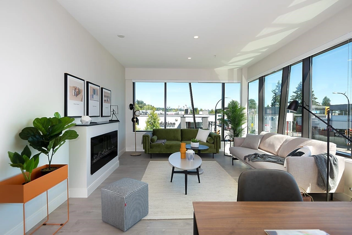 Specious newer condo situated minutes to Park Royal Shopping Centre, Lion's Gate Bridge and Downtown Vancouver. 3 bedroom + den and 2 bath unit. With over 1,424 sqft, this second storey home boasts high ceilings, wood laminate floor living areas, a cozy electric fireplace and 2 secure underground parking spaces. Enjoy the southern views of the Downtown Vancouver Skyline from one of the two spacious balconies or the six-foot high bay windows.