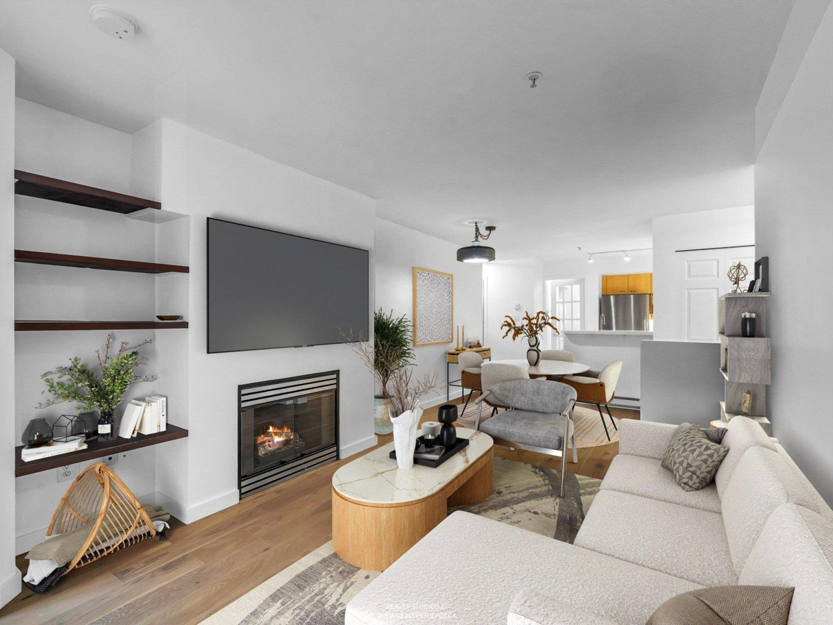 This is Kitsilano living at its best. Located at The Breeze by Bosa on the quiet side of the building, this bright and spacious open-concept home features new flooring, a cozy gas fireplace, expansive windows, and a versatile solarium that adds warmth and flexibility to the space. Step outside to an oversized patio, perfect for slow mornings or relaxed evenings. The home also offers in-suite laundry, a den or additional storage, and a pet-friendly setting. Ideally situated North of 4th Avenue, you’re just steps from cafés, groceries, yoga studios, and some of Kitsilano’s best dining, with Jericho Beach only a five-minute stroll away. A home that feels effortless, connected, and truly livable.