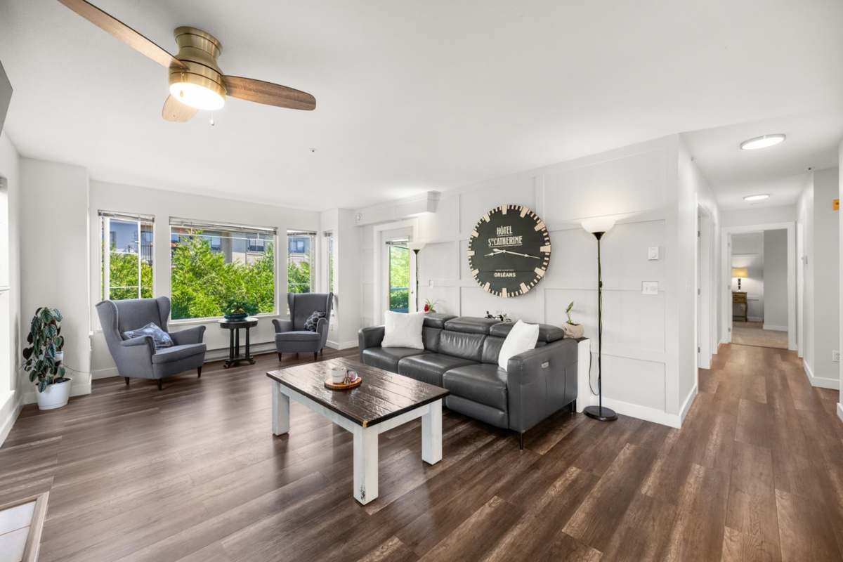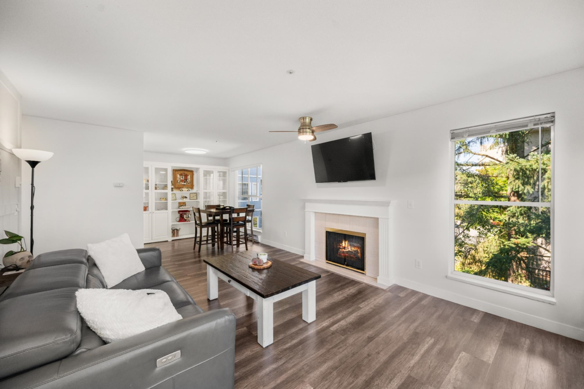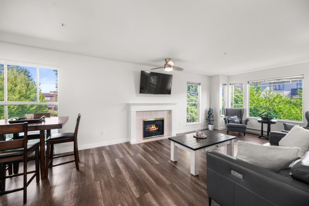 Beautifully renovated 3 bed 2 bath condo, is a place to call home. New kitchen with new appliances, new bathroom vanities, plus new paint and flooring. Expanding over 1000sqft, featuring a great entertainment area with a gas fireplace for cozy winters, a bay window reading nook, and access to 150sqft+ balcony over looking the tree tops for summer BBQ's. Your massive master bedroom has his and her closets plus a tub to relax in. The 2 other bedrooms are a good size for kids and they have their own bathroom with walk-in shower. Nothing to do but move-in and enjoy. In-suite Laundry, Parking, Storage - ALL YES! Central location, steps to shops, eateries, and the new skytrain extension line. Don't miss this amazing home. Watch the virtual tour! And call your realtor today.