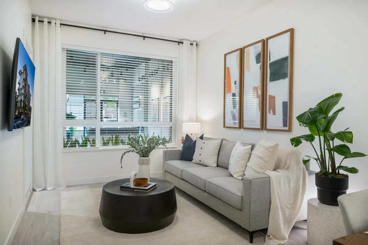 CANVAS - Quiet 2nd level 1 bed, 1 bath home comes with open and modern design features, centrally located just minutes from Langley City's future skytrain station, as well as restaurants, boutique shops & acres of parks and trails around Brydon Lagoon & the Nicomekl River Habitat. Well appointed floorplans feature 9' ceilings, polished quartz kitchen & bathroom countertops & Samsung appliances. Exterior finishes include classic red brick & durable hardboard siding. This One Bedroom A1 plan features a functional, U- shaped kitchen, full sized washer and dryer and offers access to your private deck from your living space. 1 Parking and 1 Storage Locker included.