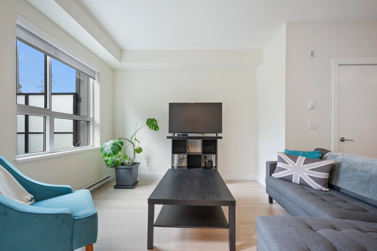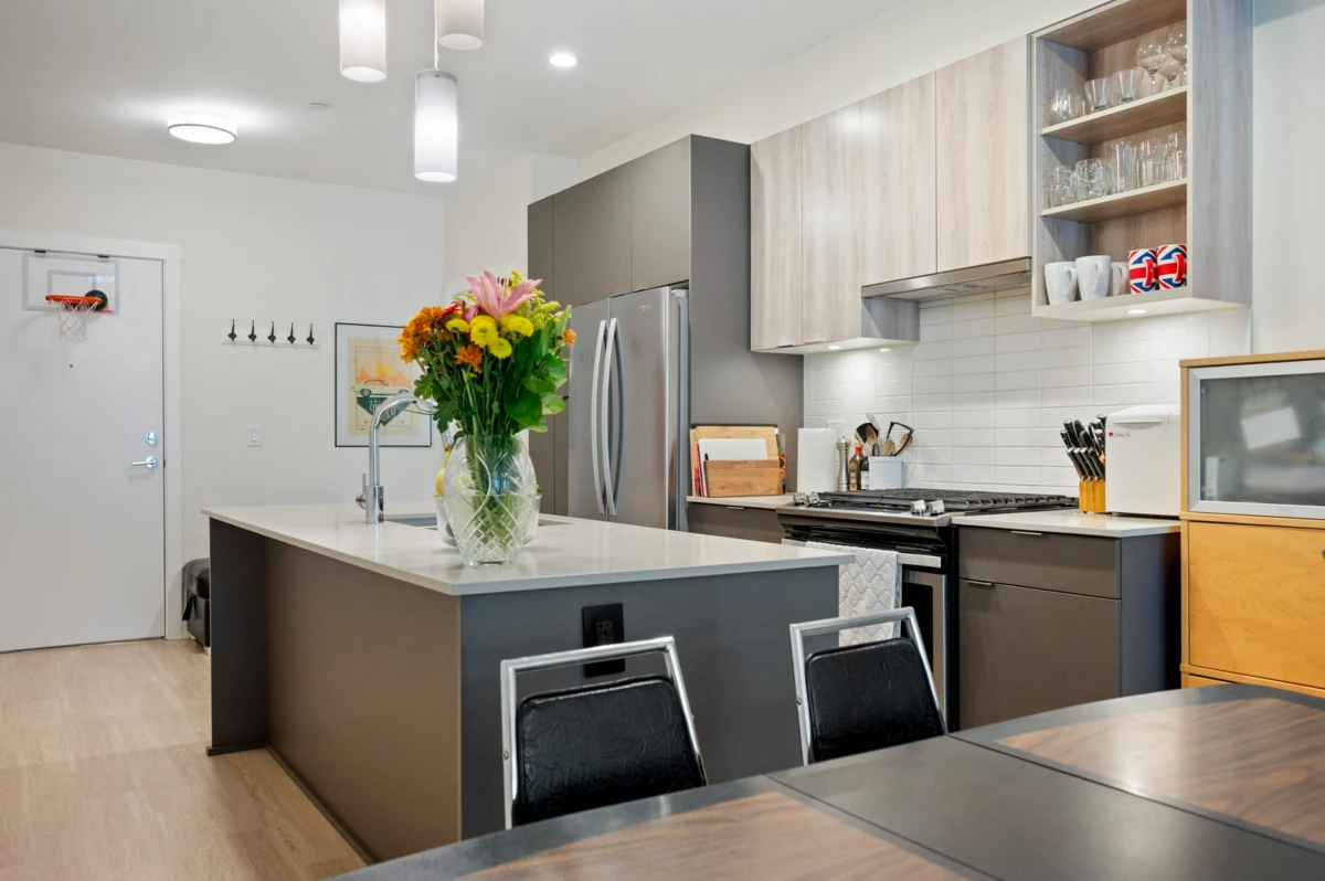 TOWNHOME in sought-after Scott & Nicholson, where contemporary design meets everyday comfort. This beautifully crafted 2 lvl home offers 2 spacious bdrms—each with walk-in closets,2.5 luxurious bthrms, & a bright, open-concept main flr filled w/ natural light. The modern kitchen feat's sleek quartz countertops, a convenient breakfast bar, & flows seamlessly into the dining & living areas. Spa-inspired bathrooms & high-quality finishes throughout elevate the space. Unbeatable location—just steps from Scottsdale Centre, transit, restaurants, & top-rated schools (Cougar Canyon & Seaquam Secondary with IB program). Enjoy exceptional resort-style amenities including: outdoor lounge with fire tables, bocce court & ping pong, indoor lounge w/ full kitchen, fitness centre and games room.