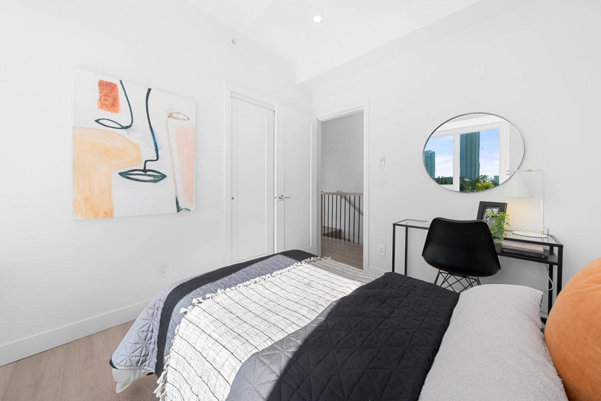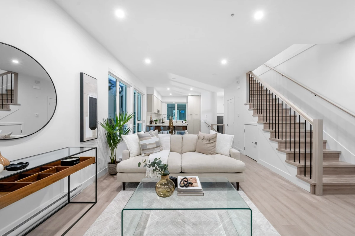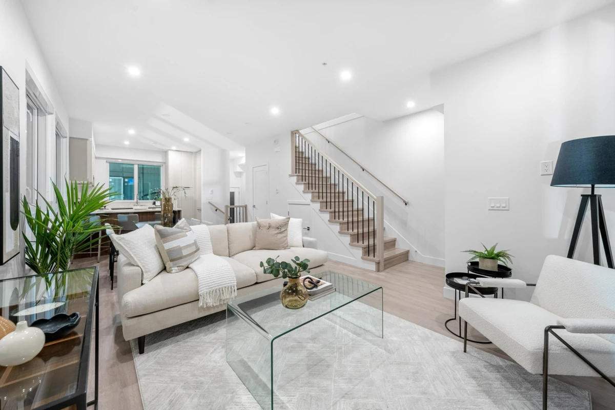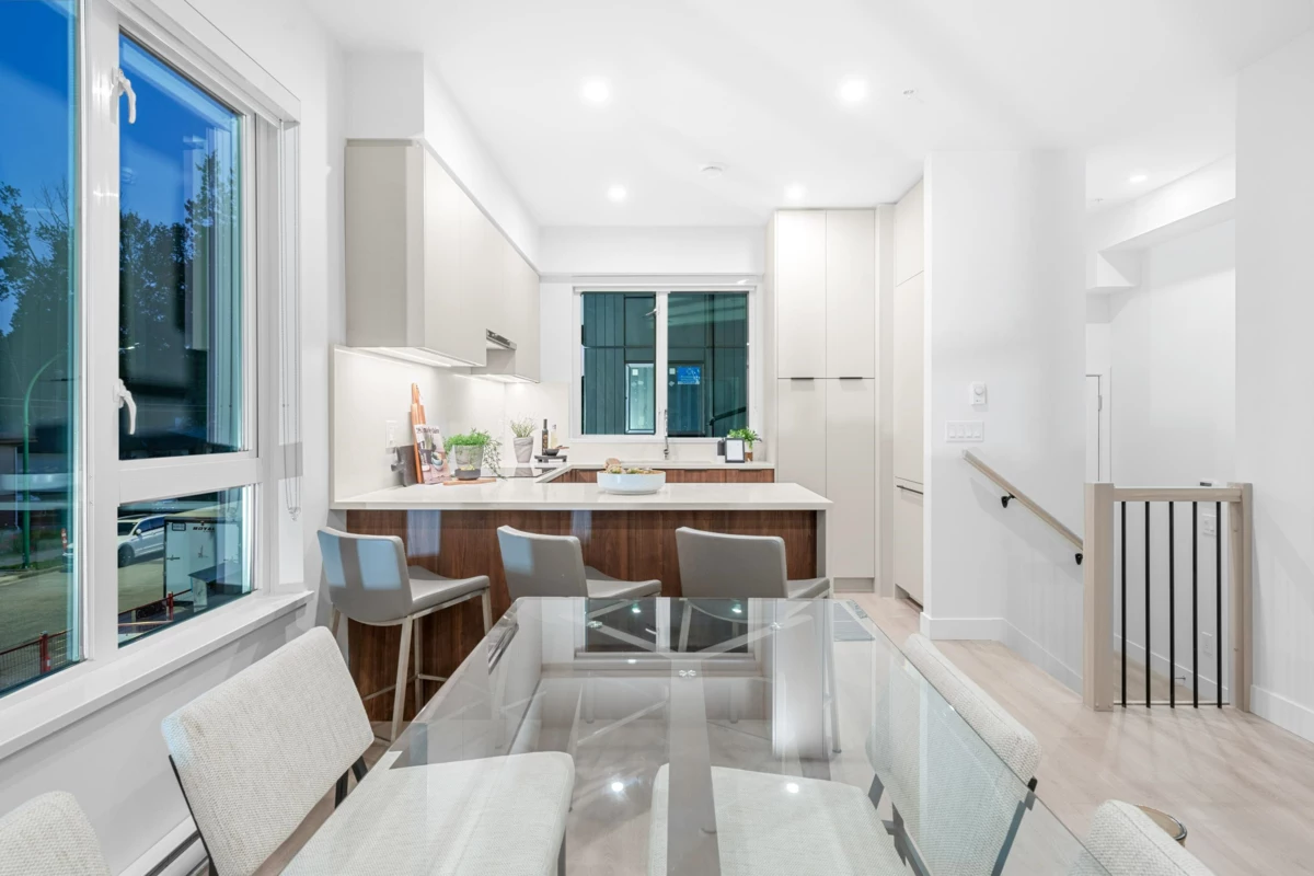 27 beautifully crafted townhomes that redefine modern living. Designed with sophistication and eco-friendly features, this community offers unmatched quality at an exceptional value for the Burnaby market. Step inside to find spacious open layouts with 9’ ceilings, quartz countertops with waterfall islands, integrated Italian appliances, sleek cabinetry, roller blinds, pot lighting, and premium finishes throughout. Thoughtfully considered to create a home that blends elegance with comfort. Prime Location: Just steps from Edmonds SkyTrain, schools (Taylor Park Elementary & Byrne Creek Secondary),child care , parks, shopping, and dining—all at your doorstep. Fully furnished show suites are available to help you envision your new home. Sales Centre at 7161 17th Ave, Burnaby (by appointment)