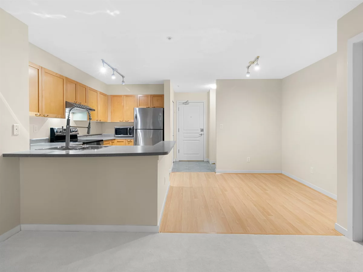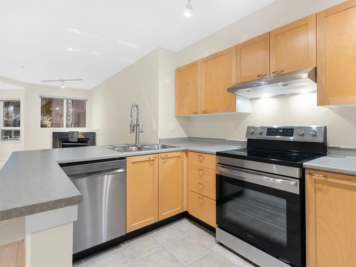 Welcome to Eighteen Trees, escape the city noise with this functional 726 SQFTt, 1 bed plus den sanctuary overlooking the greenbelt. This home offers open floor plan, boasting new carpets, new paint, new dishwasher, range, washer/dryer. Well maintained and great for first time buyers. Close to Highgate Village or easy access to Marine Gateway. 1 parking and 1 locker included. Don't miss this one, call today for your private viewing. Open House Sunday Dec 20 2pm-4pm