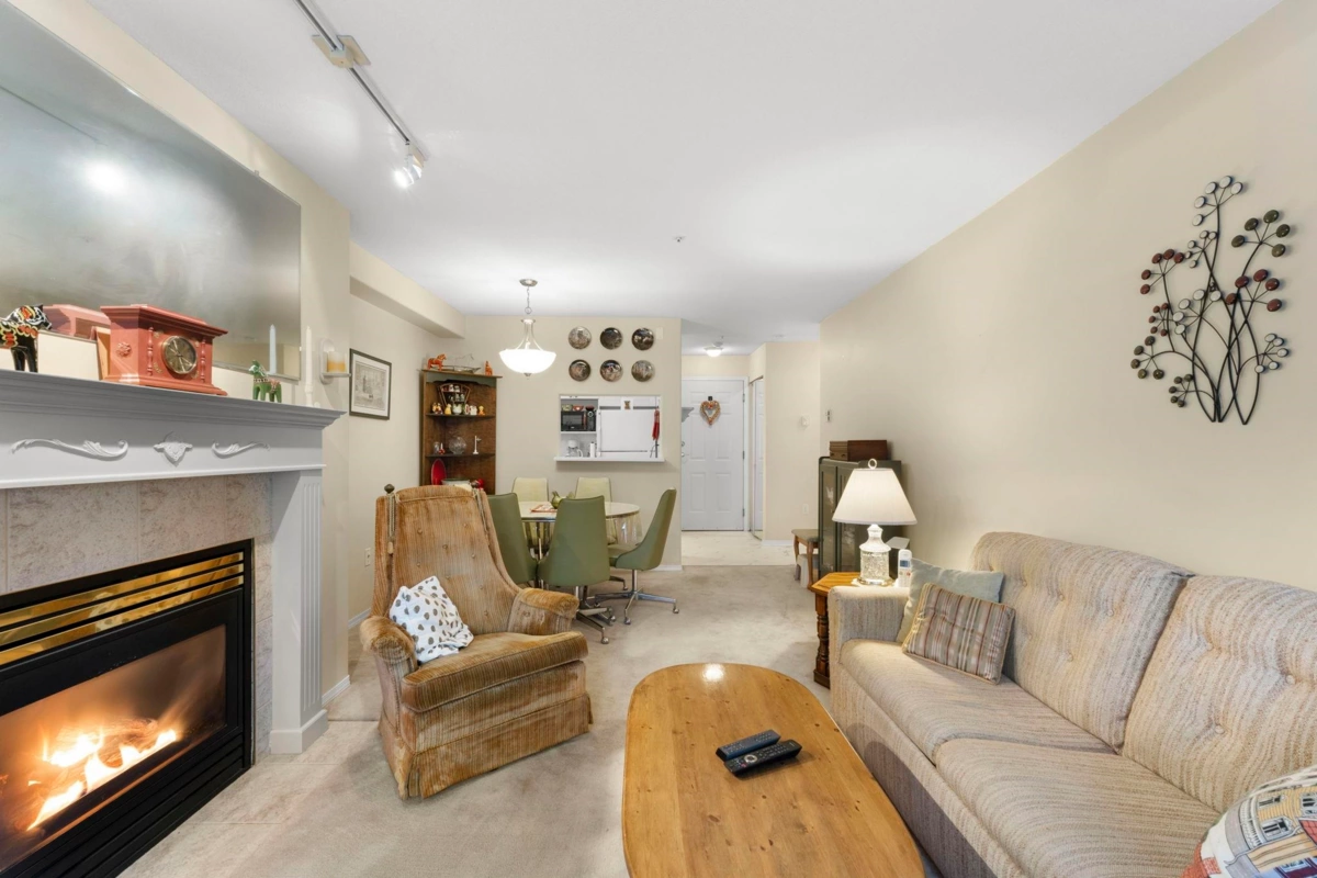 Welcome to Ivy Creek in Surrey. This bright and spacious 1-bedroom home sits on the quiet side of the building, offering an open layout with plenty of natural light and a cozy gas fireplace. The generous bedroom provides great closet space, and the living area flows nicely for everyday comfort. Well-managed and rain screened, with low strata fees, the building offers in-suite laundry, a guest suite, storage locker, amenity room, keyless entry, and ample visitor parking. Centrally located just minutes to Surrey Memorial Hospital, SFU Surrey, King George SkyTrain, Central City Mall, shops, cafés, and transit. Pet friendly and ideal for first-time buyers or investors. A must-see book your showing today. OPEN HOUSE JAN 24 1 - 3PM & JAN 25 1-3 PM
