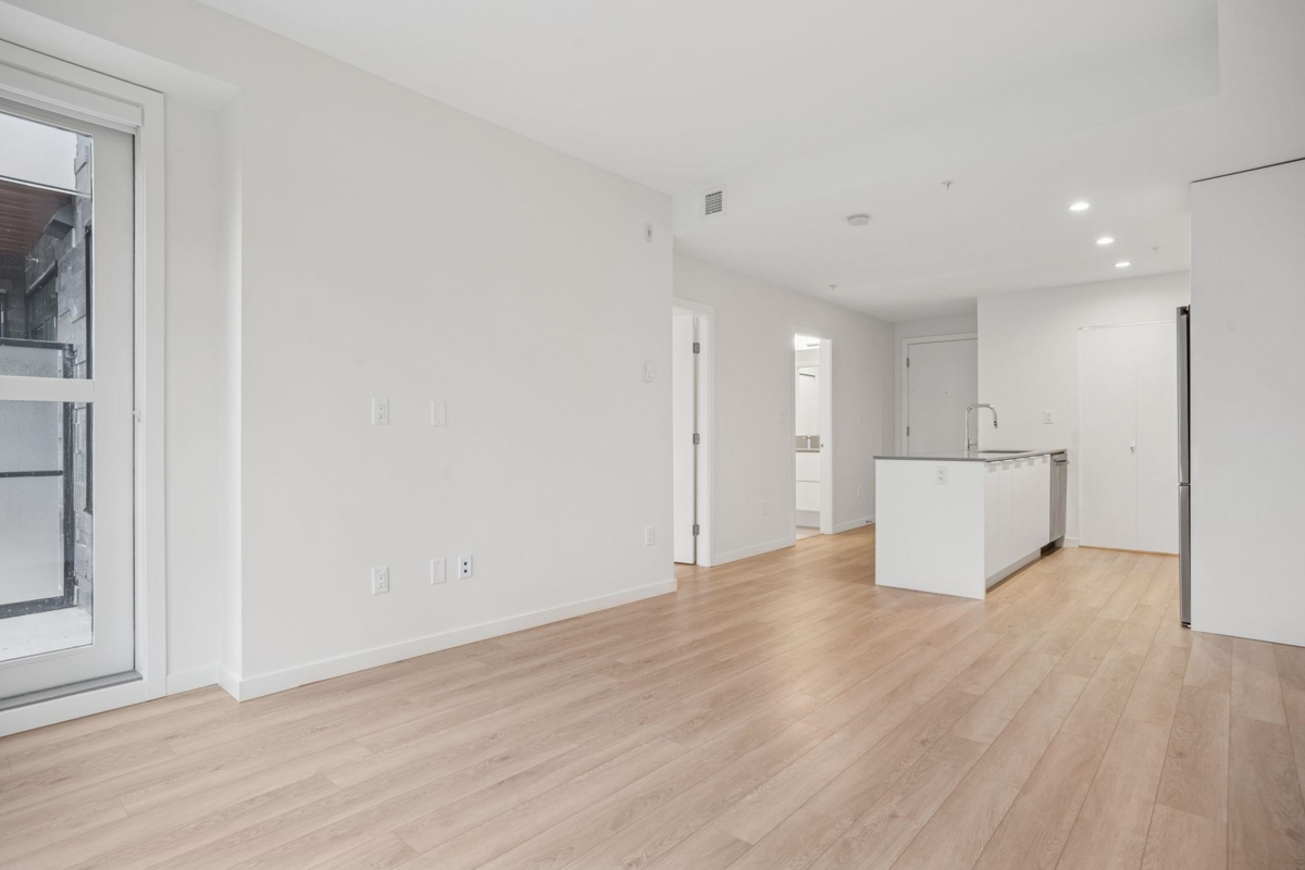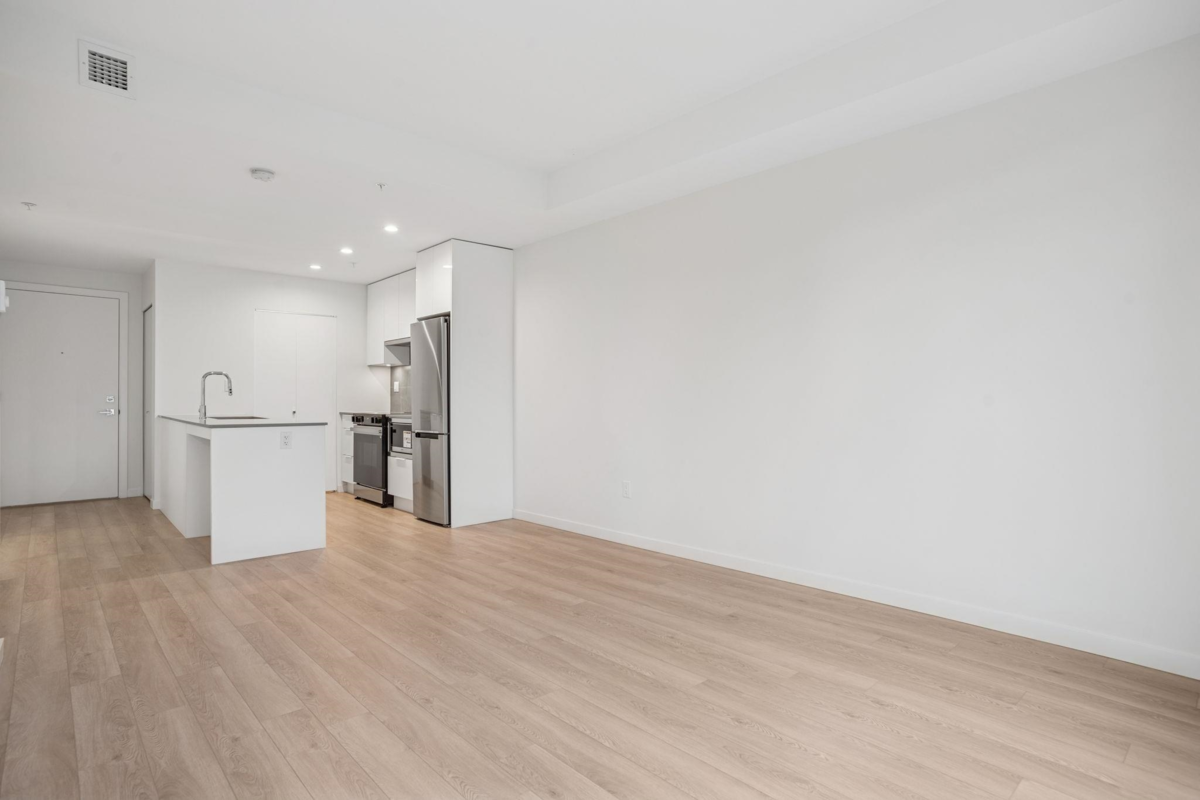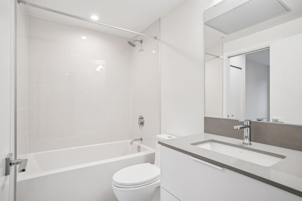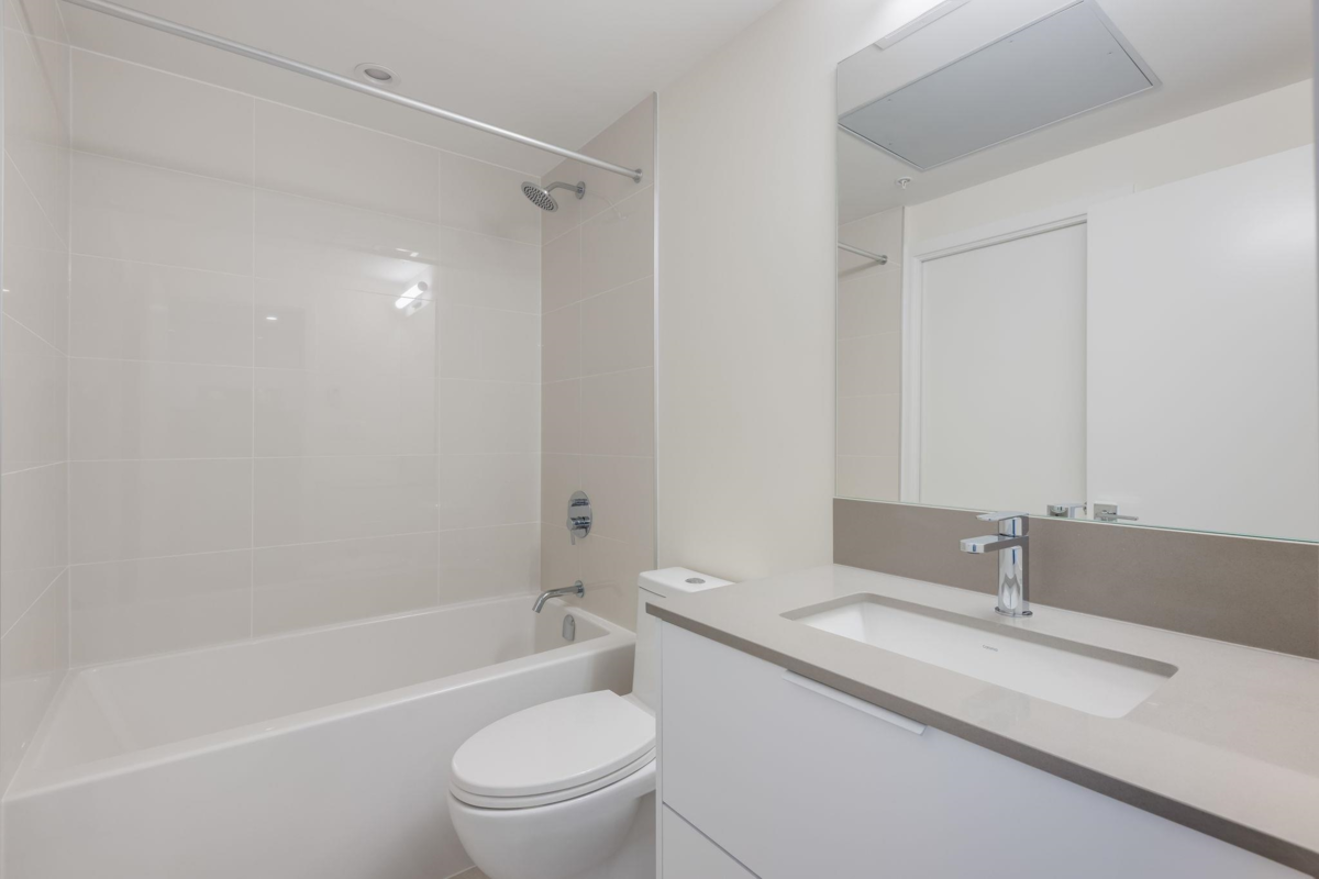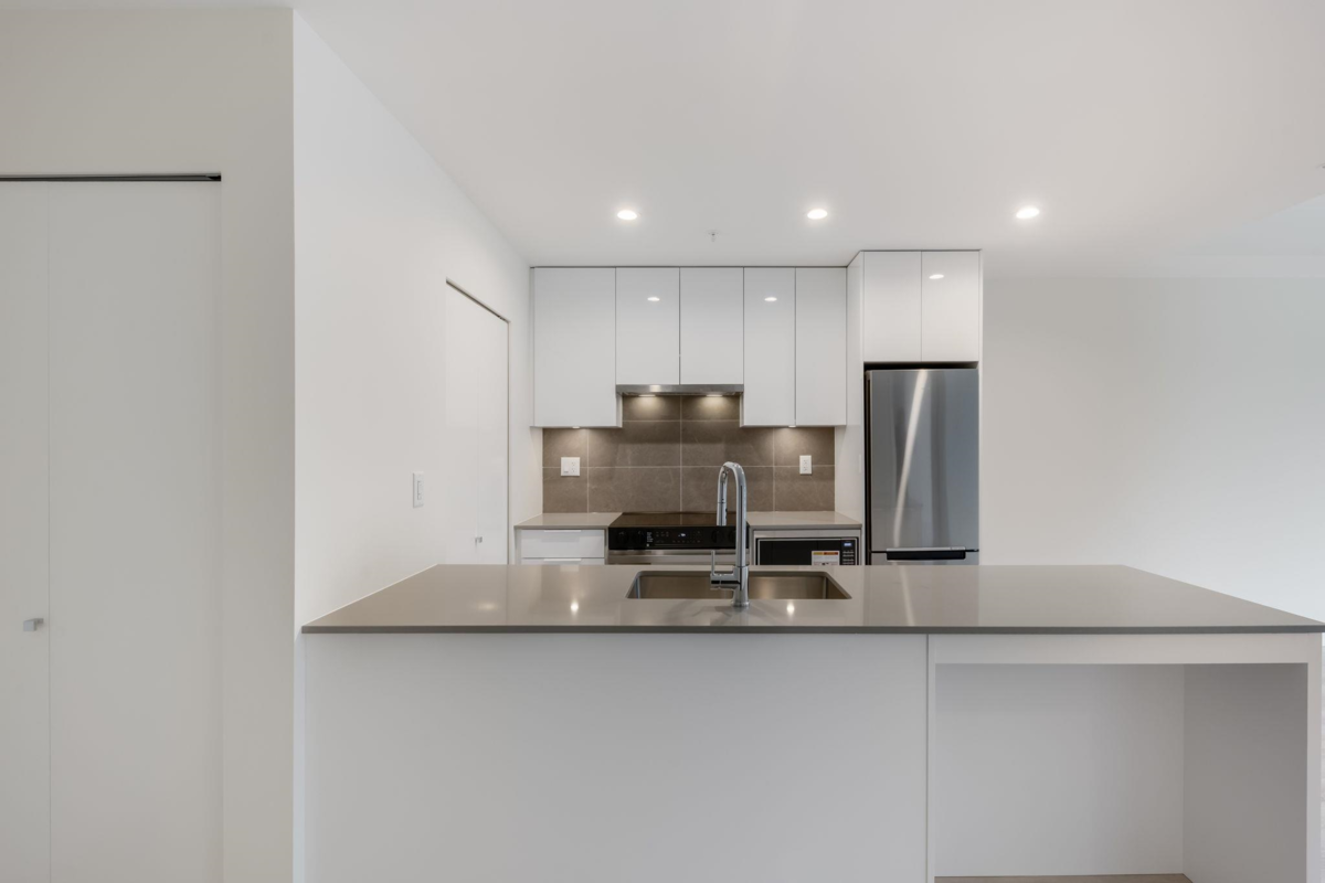 Welcome to Prosper! South facing 1 Bed 1 Bath home with approximately 9 foot ceilings offers an open and stylish design. Laminate flooring throughout, sleek cabinetry, Samsung stainless steel appliance package, full size washer and dryer. This home also includes 1 parking stall and 1 storage locker. Enjoy premium amenities, including a full kitchen & dining area, a billiards game zone, a theatre room, a state-of-the-art fitness centre and an outdoor yoga/meditation garden. Experience convenient living at Prosper, situated between Guilford Mall and Surrey City Centre. Minutes away from restaurants, shopping, transit, parks and the SFU Campus.