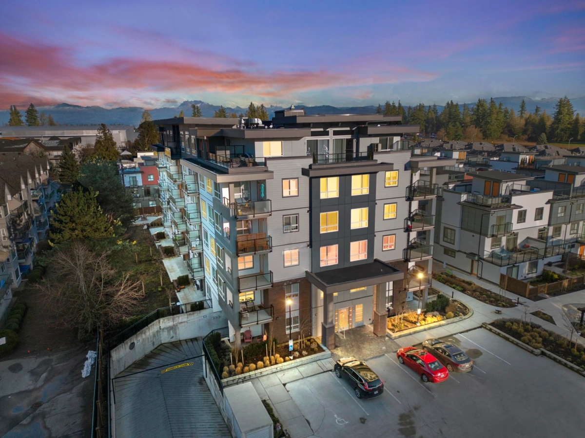 UPSCALE AND MODERN 2 BED 2 BATH UNIT IN CINEMA DISTRICT IS READY FOR YOU TO COME HOME! This unit offers an amazing open floor plan with a sleek kitchen, inviting living room that opens up onto your balcony, in suite laundry and 2 very generous sized bedrooms. The primary bedroom contains a walk in closet and a primary ensuite with spa like finishes. The second bedroom also come with its OWN WALK IN CLOSET and has cheater ensuite access to the second full bathroom. It is like having 2 PRIMARY BEDROOMS! You cannot beat this CENTRAL LOCATION within very close proximity to Hwy 1, the University of the Fraser Valley, Abbotsford Centre and McCallum Junction shopping center. This unit comes with 2 PARKING SPOTS and 1 storage locker! Rentals and pets allowed!