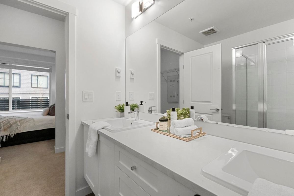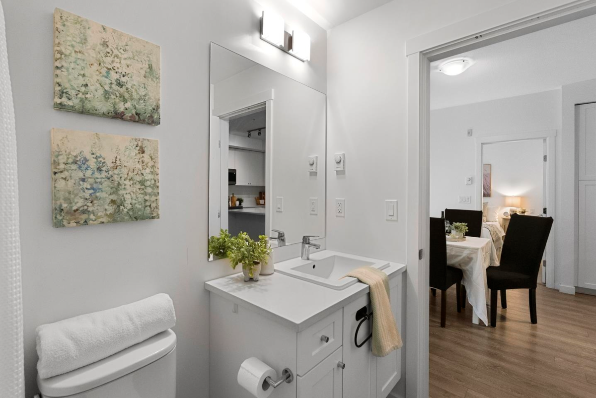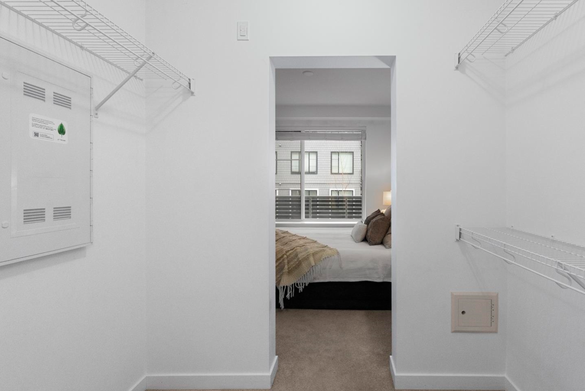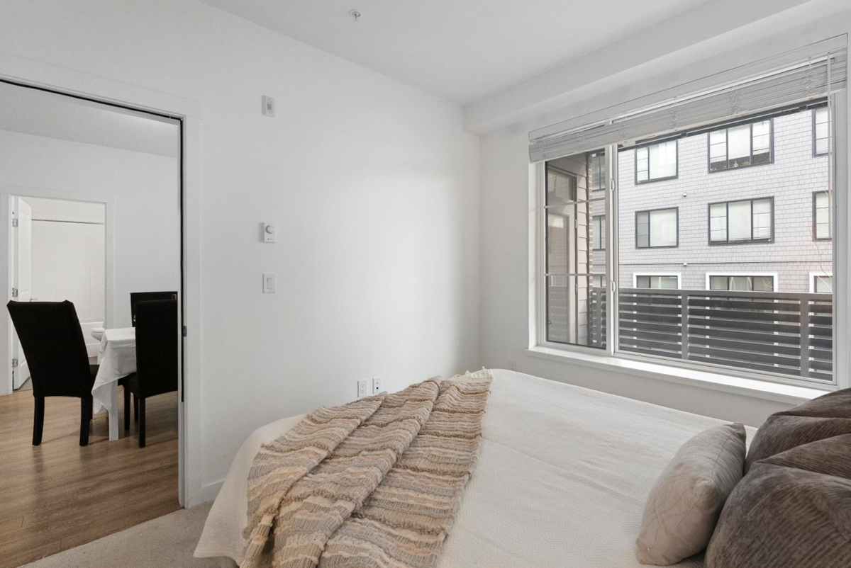 Built in 2023 by the reputable Dawson & Sawyer, this contemporary 3-bedroom, 2-bathroom residence offers 847 sq. ft. of expertly designed living space. The bright, open-concept interior features soaring ceilings and expansive windows, leading to a private, tranquil balcony overlooking the courtyard. The gourmet kitchen is a chef’s delight, equipped with a large island, premium stainless steel appliances, quartz countertops, and extensive cabinetry. This home includes one secure parking stall and one storage locker for added convenience. Residents enjoy exclusive access to a gym, yoga studio, dog wash, daycare, and playground. Ideally situated near the future SkyTrain expansion, this highly walkable location combines immediate lifestyle convenience with exceptional long-term value.
