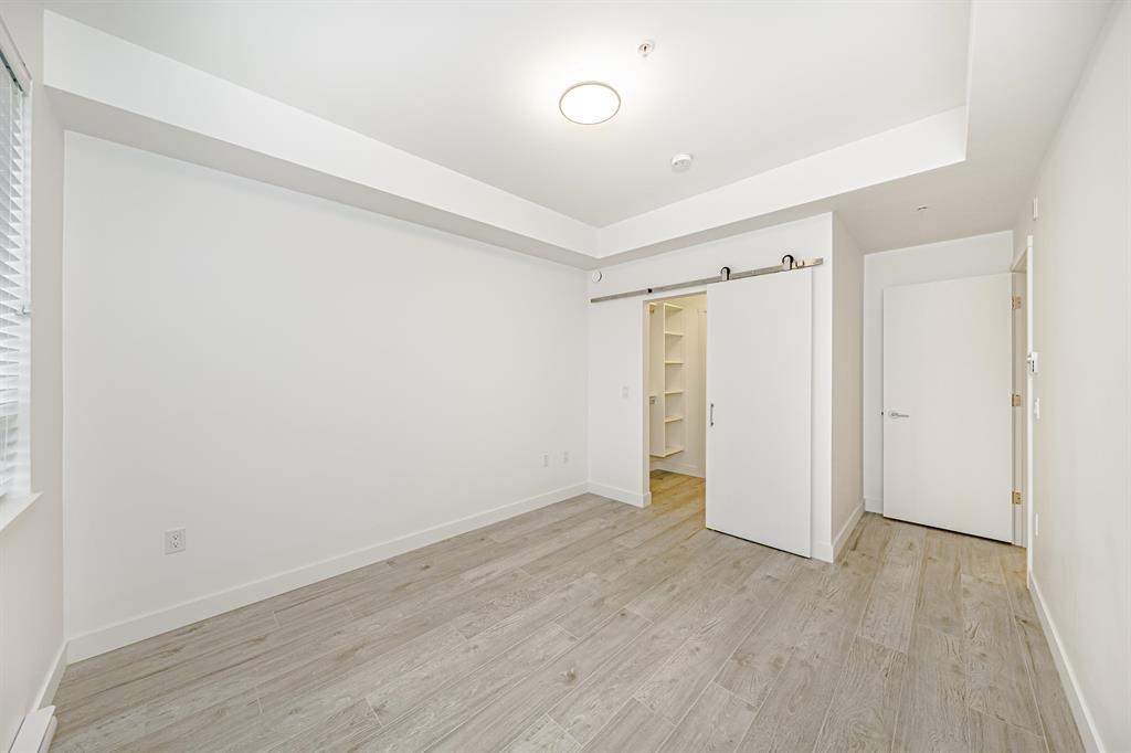 Rare Find! Welcome to THE BLOC by Maclean Homes. This spacious 1-bedroom + large den (easily suitable as a small bedroom) is tucked away in a quiet, south-facing location, offering bright and airy living w/ 9-foot ceilings & laminate flooring throughout. The generous kitchen features an extra-large island with ample storage, perfect for cooking & entertaining. A well-designed layout includes a Jack-n-Jill bathroom and a king-size primary bedroom complete with a walk-in closet. Enjoy low maintenance fees (includes hot water), a secure bike room conveniently located on the main level, and access to an amenity room. Unbeatable location! Walk to schools at all levels, parks, shopping, &restaurants. Just minutes to Coquitlam Centre, the Evergreen Line, West Coast Express & steps to poco trails.
