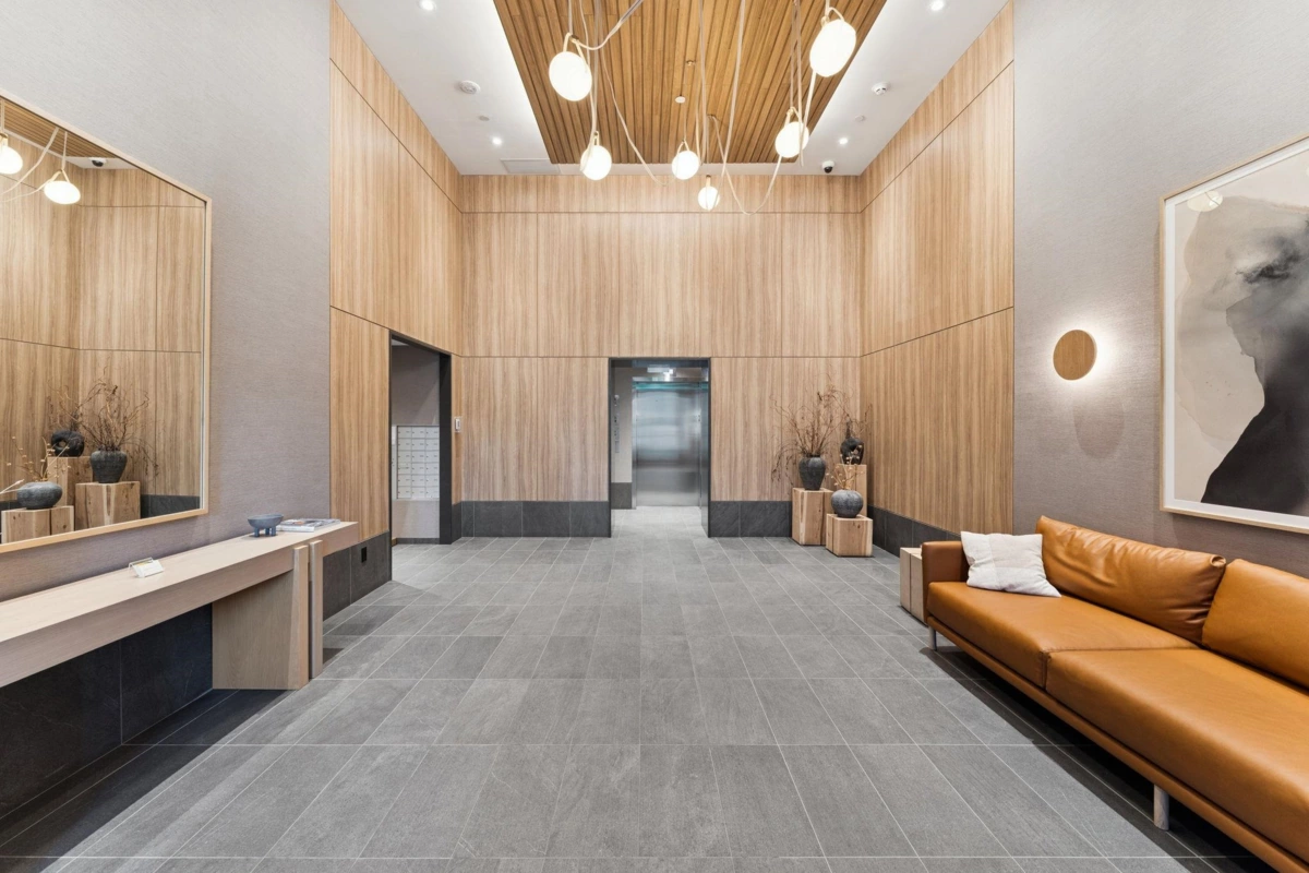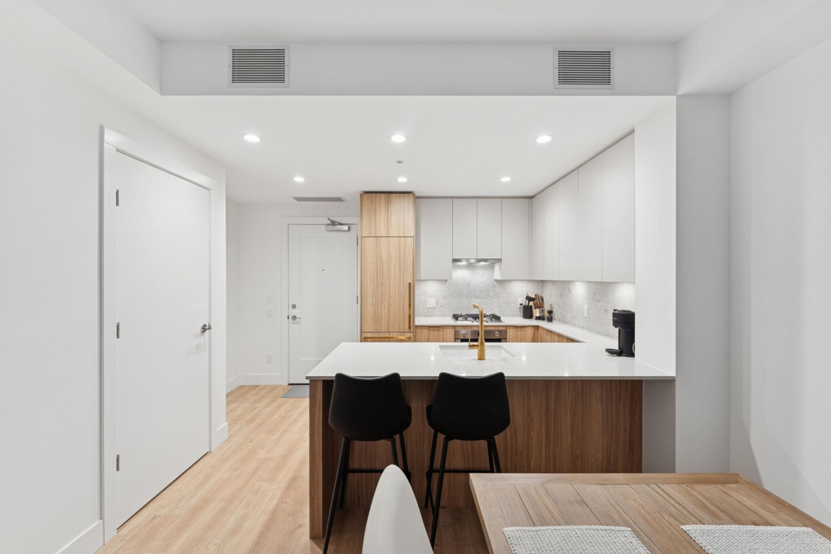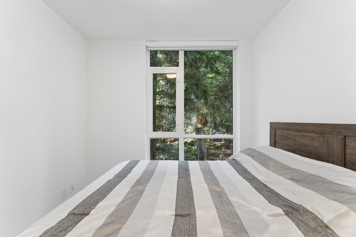PARKSIDE AT LYNN BY MOSAIC HOMES - Lynn Valley's premier address. This one bedroom + den/flex concrete home features an efficient, open concept floorplan with lush forest views... like an adult treehouse! The kitchen features integrated appliances, quartz counters, ample storage and rich brass hardware, flowing on designer vinyl flooring into the dining/living room and massive covered patio. Appreciate air-conditioning, over-height ceilings and a den/flex space that comfortably accommodates an office. The washroom is a true sanctuary with deep soaker tub, oversized vanity and floor to ceiling tiling. Resort-style amenities include indoor pool, fitness centre, yoga studio and social lounge. All of this, at nature's door... steps to hiking/biking trails and Lynn Valley Centre/Village.