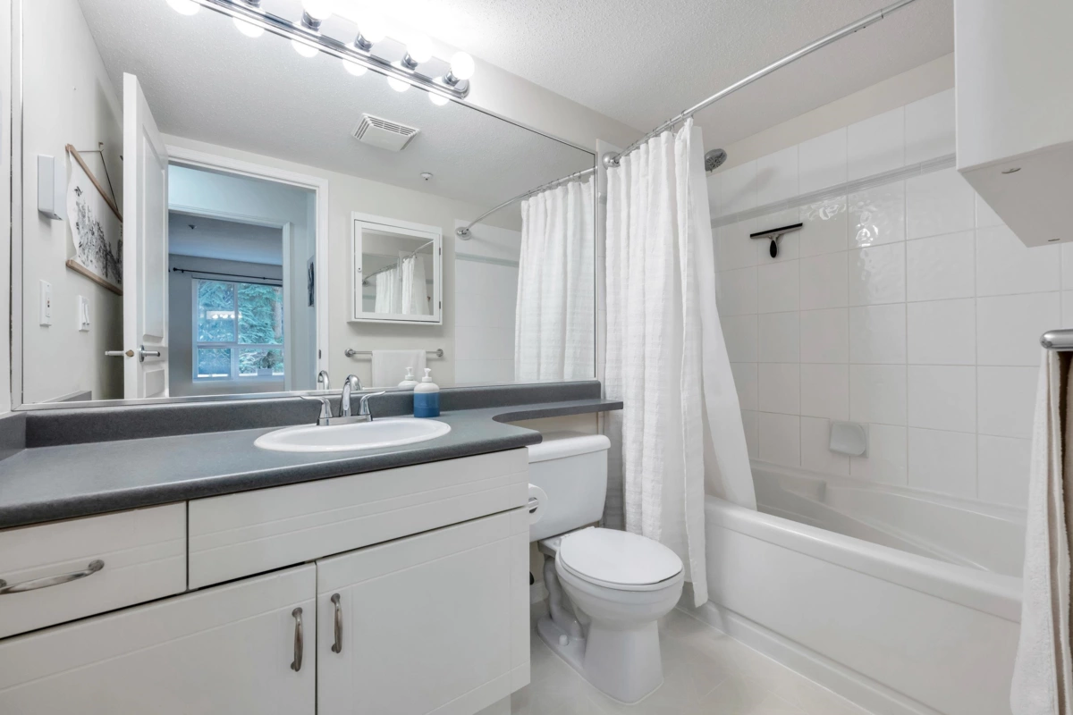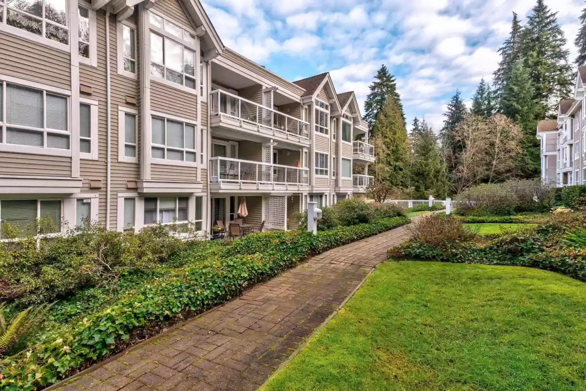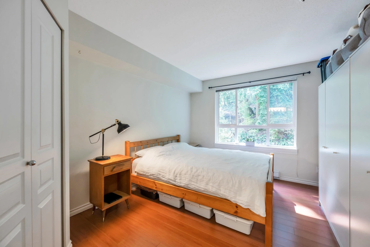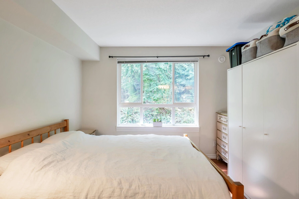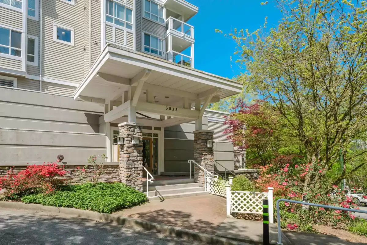 Three reasons you want to live at 208 3033 Terravista Place! Location! backing onto a forested slope, surrounded by a greenbelt, with seasonal views of mountains & the inlet give you a sense of privacy & seclusion. Location! Despite the tucked-away feel, you’re still near Port Moody’s excellent amenities: Port Moody Rec Complex, library, multi-use greenways, nature trails, & waterfront paths like the Shoreline Trail & Rocky Point Park-a 15-minute walk away. SkyTrain & WCE are a 10-minute walk. Location! shopping & dining nearby with cafés, restaurants, groceries, shops & services. This 2 bedroom, 1 bath home is well designed, updated & well cared for. 2 parking spots, storage room & pets are welcome. On site gym, car wash station, bike room & visitor parking in a well-maintained building.