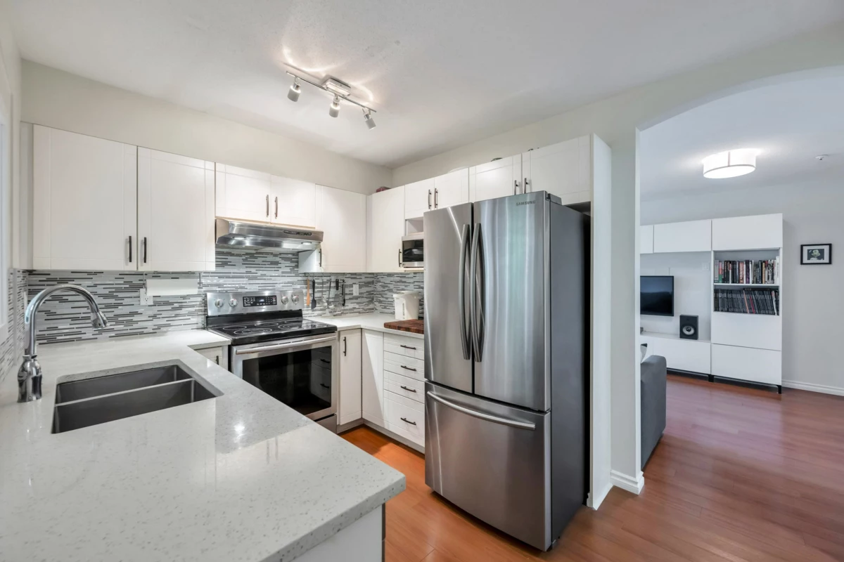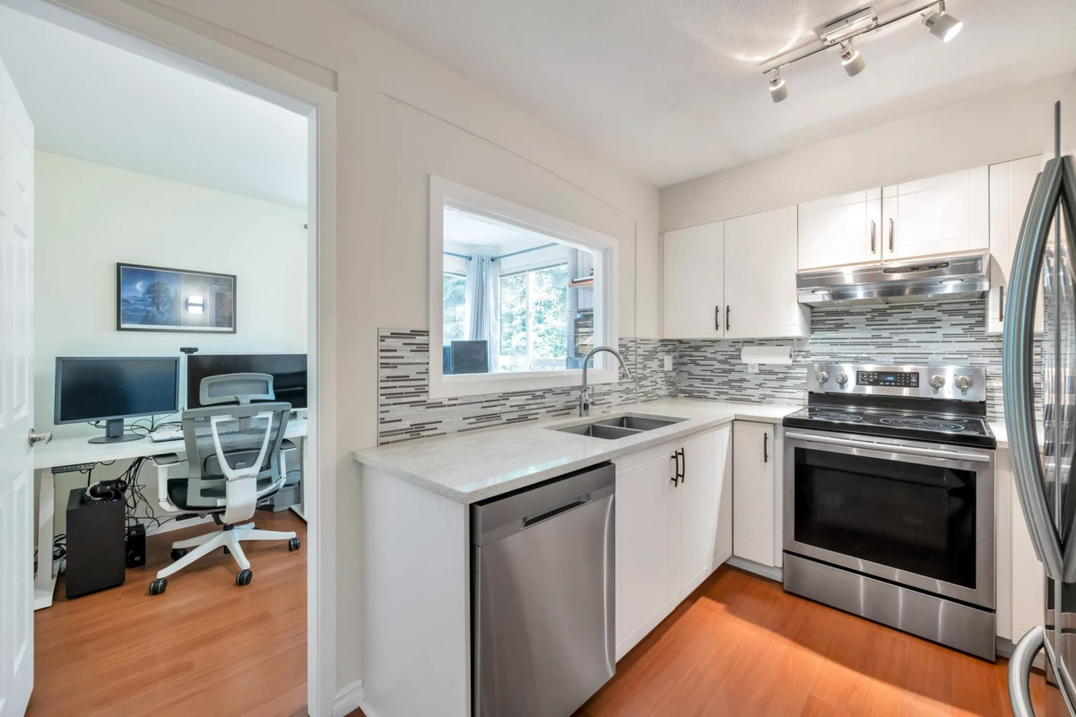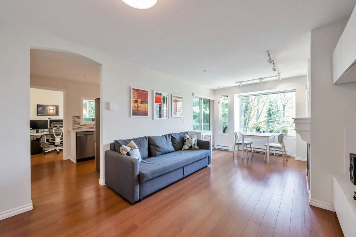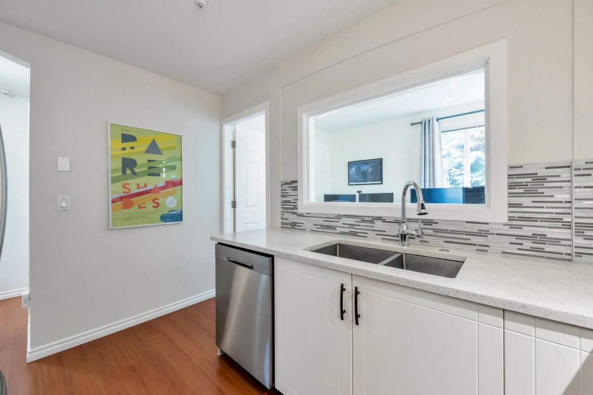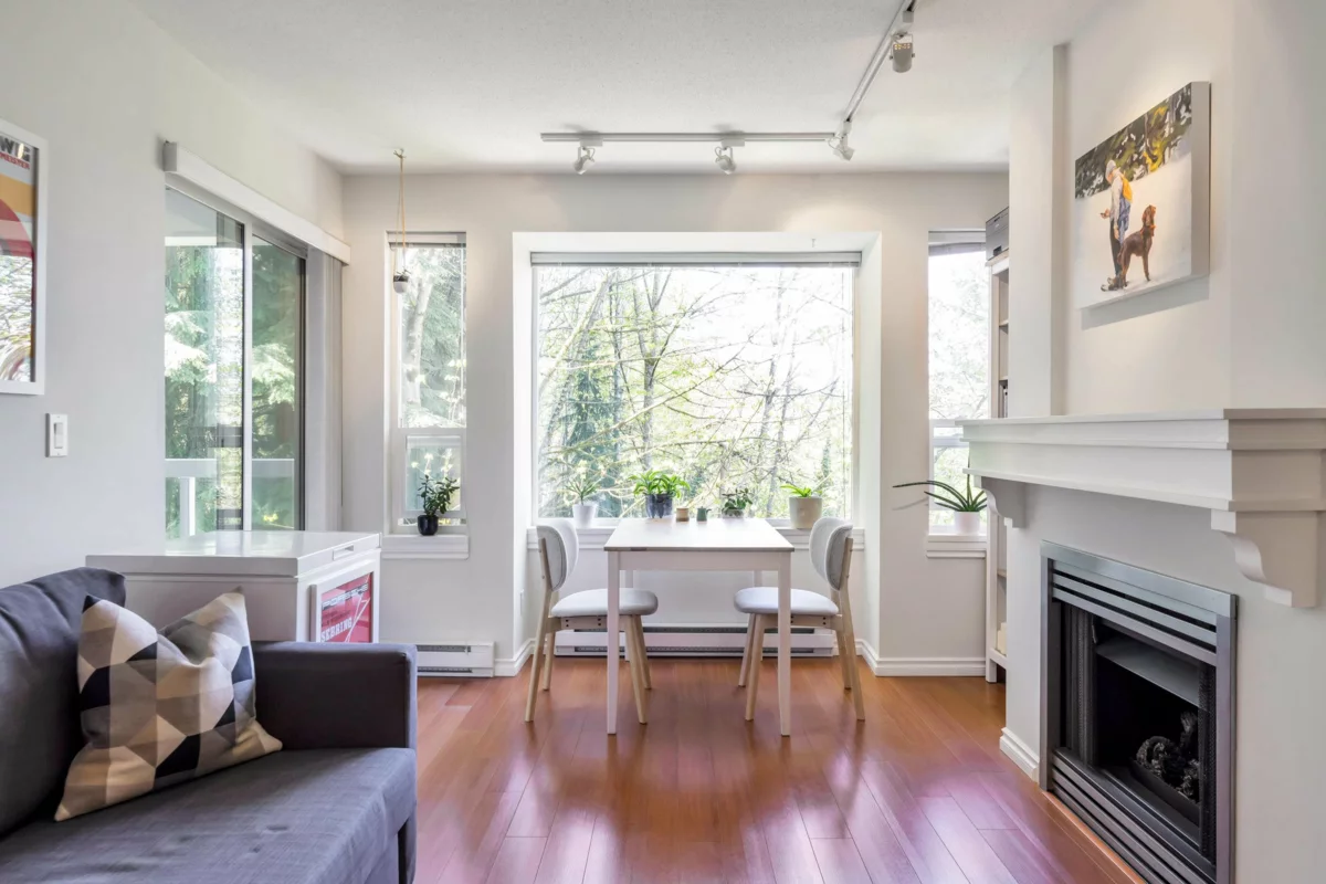 Three reasons you want to live at 208 3033 Terravista Place! Location! backing onto a forested slope, surrounded by a greenbelt, with seasonal views of mountains & the inlet give you a sense of privacy & seclusion. Location! Despite the tucked-away feel, you’re still near Port Moody’s excellent amenities: Port Moody Rec Complex, library, multi-use greenways, nature trails, & waterfront paths like the Shoreline Trail & Rocky Point Park-a 15-minute walk away. SkyTrain & WCE are a 10-minute walk. Location! shopping & dining nearby with cafés, restaurants, groceries, shops & services. This 2 bedroom, 1 bath home is well designed, updated & well cared for. 2 parking spots, storage room & pets are welcome. On site gym, car wash station, bike room & visitor parking in a well-maintained building.