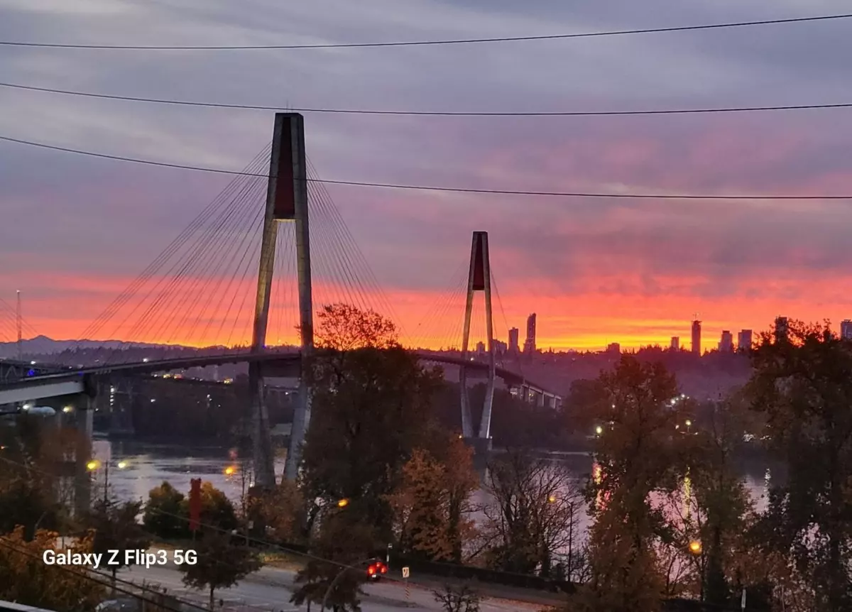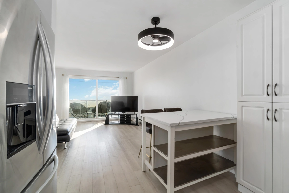 LOCATION IS EVERYTHING! Incredible 180 view of 6 bridges and Mt Baker. 2 minute walk to skytrain/ Westminster Pier Park/ boardwalk. New stainless appliances/ quartz countertop/fresh paint. Modern open design with large kitchen/ living area & bonus in-unit storage room. New Vinyl plank flooring throughout / top of the line light fixtures/fan. Bathroom full Reno featuring amazing walk-in shower. 1 secure parking. Enjoy historical NW community events. Quiet impressive well kept building. CRF $254,434. Relax on your balcony and enjoy the show, be it fireworks or drone spectacular.