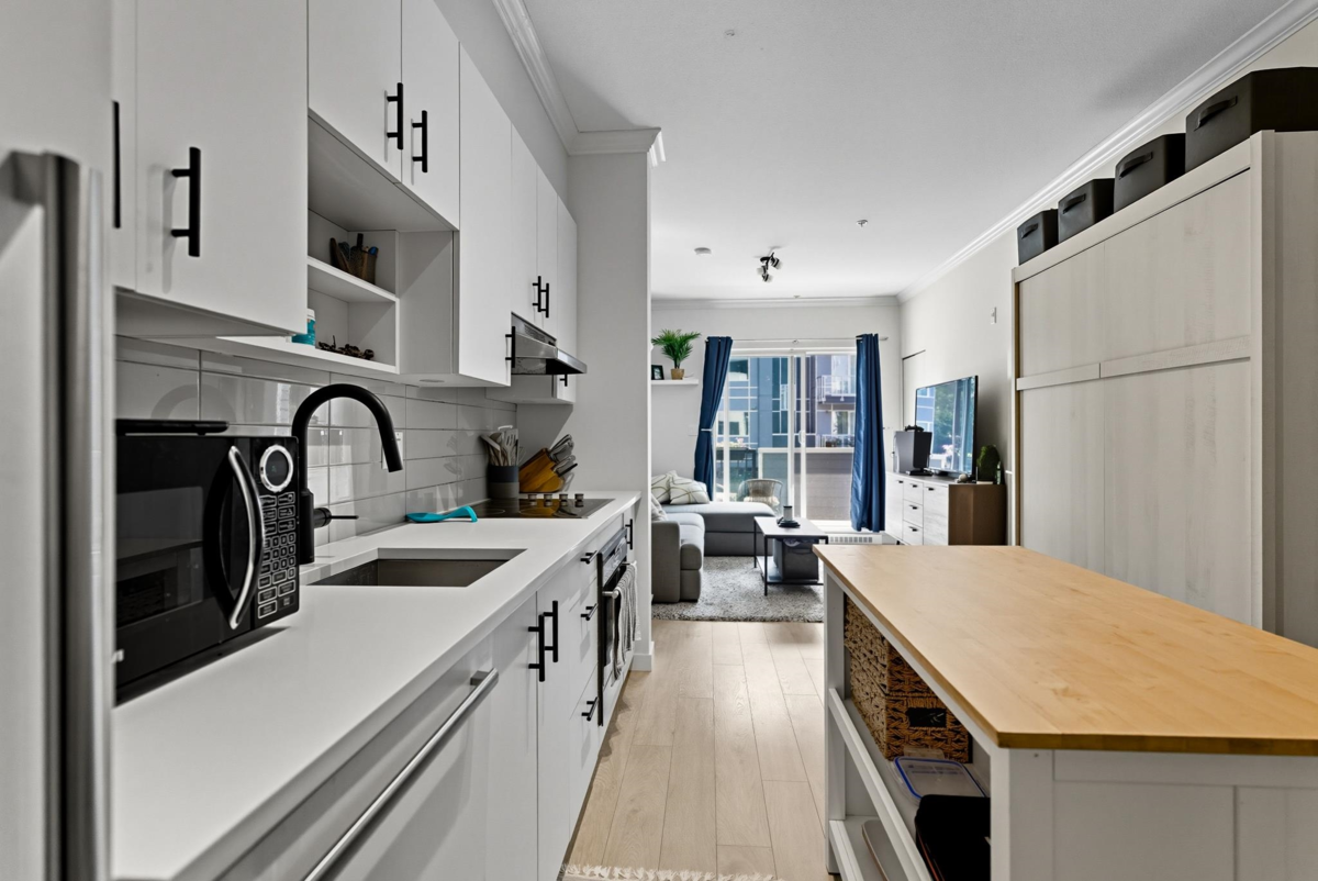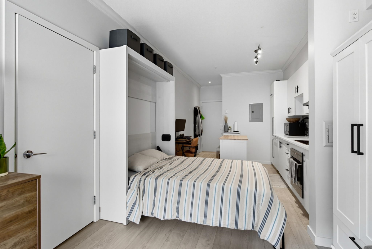 Flawlessly laid out Studio with Parking at Balance ! A great opportunity to get into the market with this Modern studio near SFU & Surrey Memorial Hospital – Parking + Storage Included ! Discover urban living at its finest in this efficiently designed layout featuring sleek modern finishes & an open concept home that maximizes every square foot. The large covered patio adds to your living space ! Enjoy the convenience of in-suite laundry, plus the rare bonus of 1 secured parking stall & a private storage locker. Ideally located just steps from Simon Fraser University, Surrey Memorial Hospital, major transit routes, cafés, & shops—this is the perfect home for students, professionals, or investors. Move-in ready & packed with value ! Call for your private showing today !