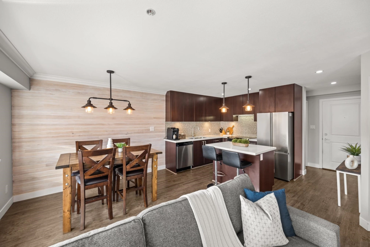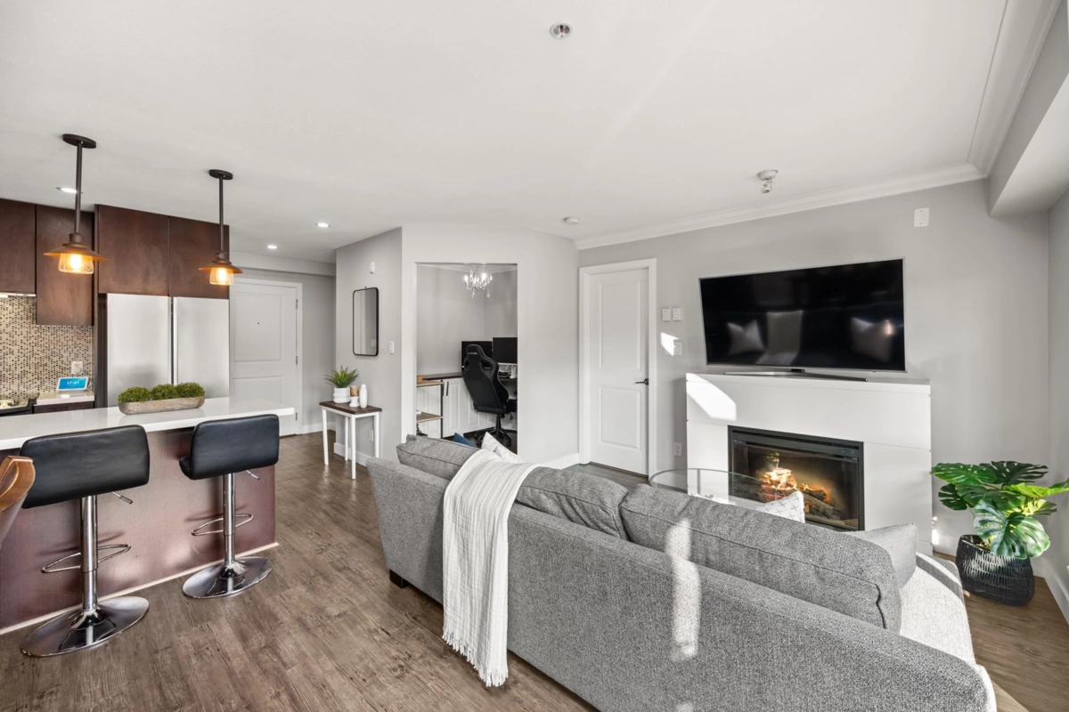 Step into your own private outdoor oasis! This rare 1 bed + den condo at The Main at Morgan Crossing boasts an expansive, fenced sundeck—perfect for lounging, barbecuing, and entertaining under the open sky. Enjoy the comfort of a home with the freedom of incredible outdoor living, all in the heart of a vibrant, walkable community. Inside, discover stylish vinyl plank flooring, sleek countertops, modern lighting, and custom millwork that blend comfort with sophistication. Just steps from 70+ shops, restaurants, parks, and transit, this home offers the ultimate blend of lifestyle and convenience.