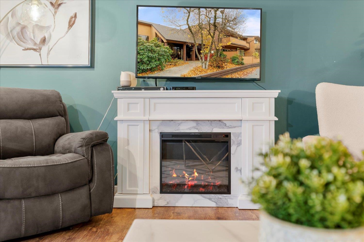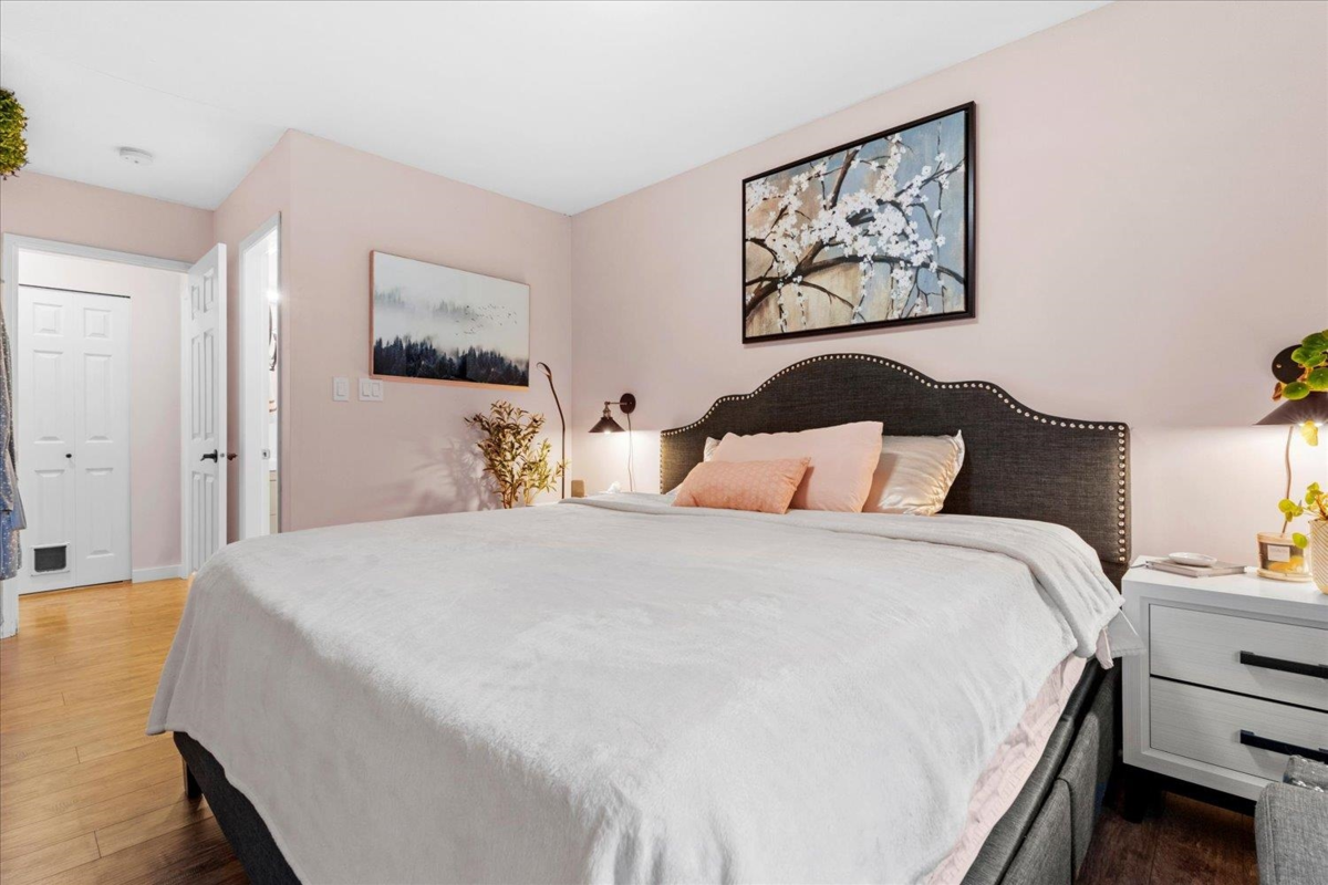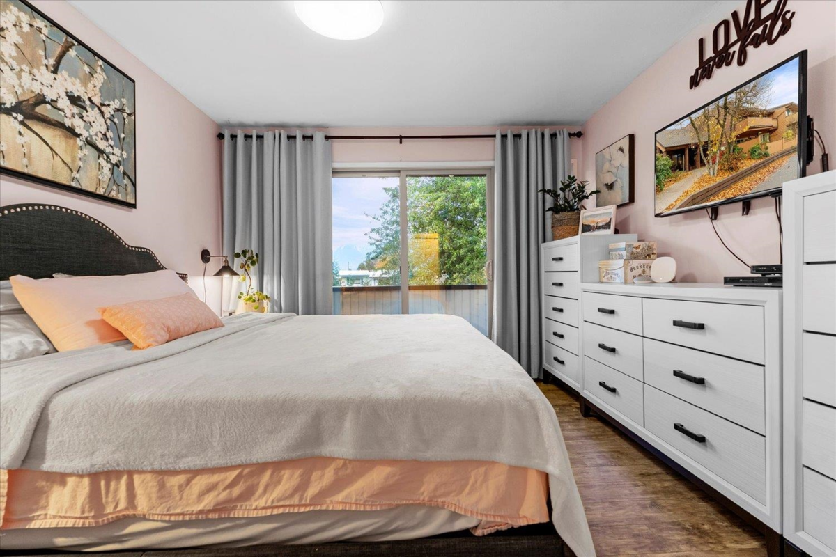 Move-in ready TOP FLOOR 2 bed, 2 bath condo with EXTENSIVE PROFESSIONAL UPDATES throughout. This bright & spacious home offers vaulted ceilings, a renovated kitchen with quartz countertops & stainless steel appliances, updated spa like bathrooms, and a BUILT IN AIR CONDITIONING UNIT system for year-round comfort. The primary bedroom features MOUNT CHEAM VIEWS with a 2-piece ensuite, while the second bedroom is ideal for guests or a home office. Step onto your private balcony overlooking the peaceful STRATA GREENSPACE for gardening & great for pets! Conveniently located close to parks, shopping, and transit. A great opportunity for first-time buyers looking for a stylish, low-maintenance home in a fantastic location. This one is a MUST VIEW TODAY!